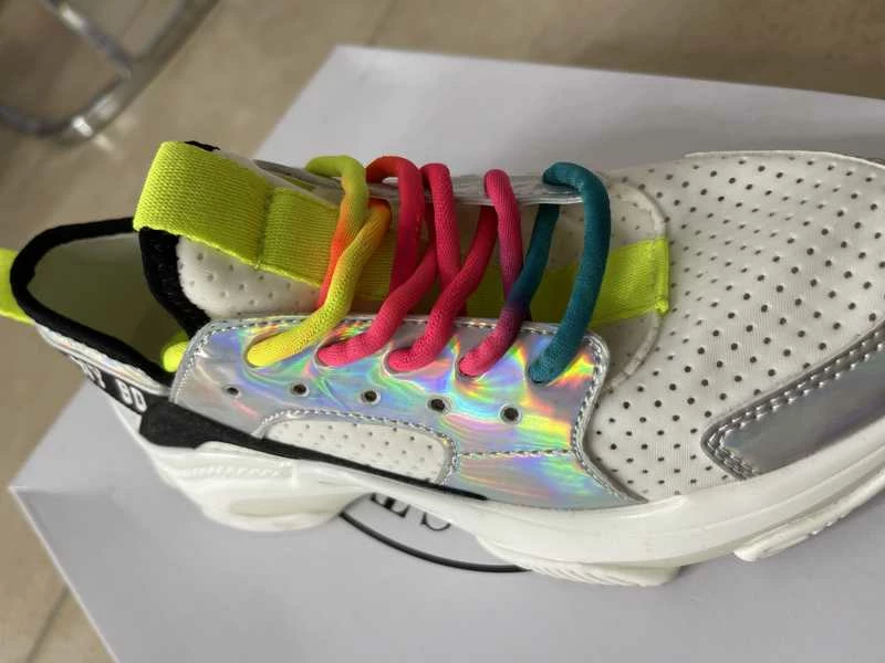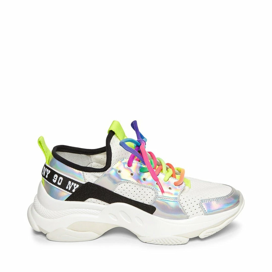 Show off your sporty side with this playful pick! Metallic accents, neon trim and rainbow laces make the AJAX sneaker fun, festive footwear to style with active getups.