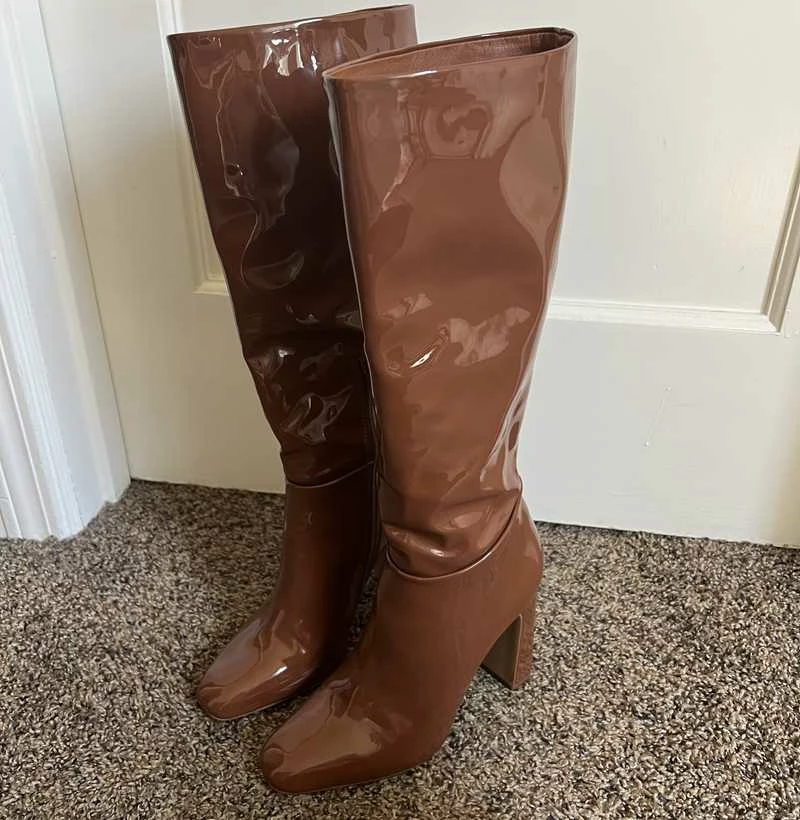 It’s time for a re-boot and AMBROSE is exactly what you need. This knee-high boot is designed in shiny patent material and sits on a sturdy block heel, giving you all the height and all the glam.