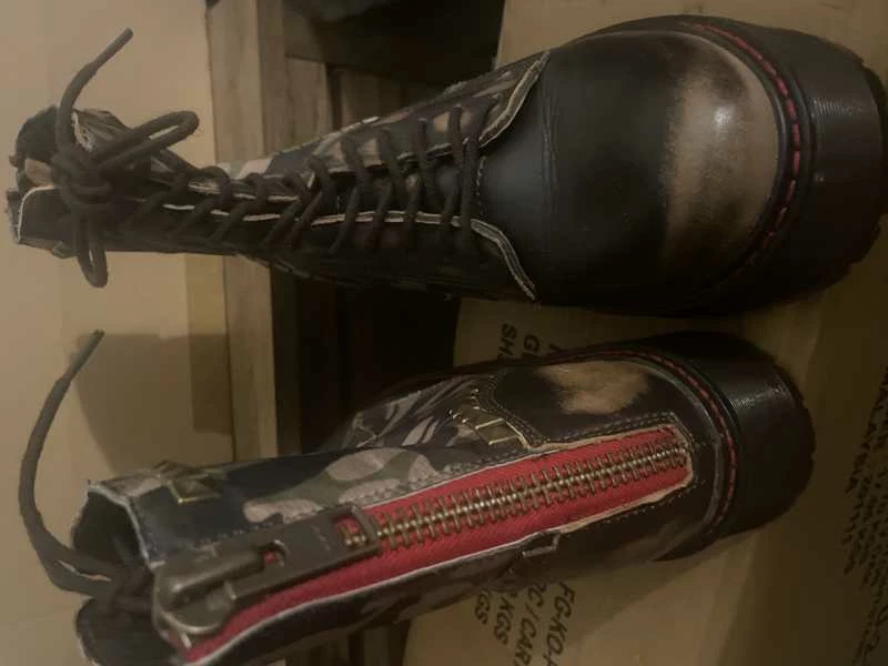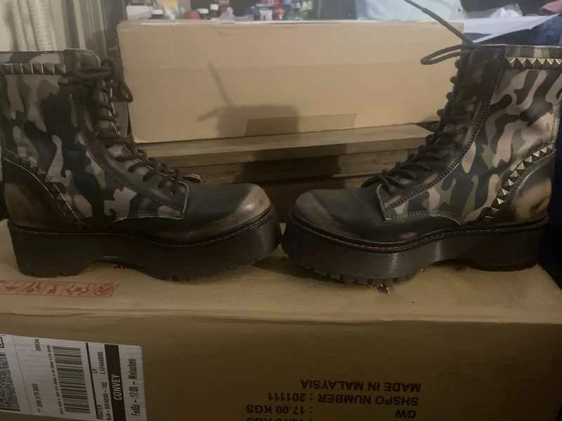 Perfect for the fashionable bad girl, AVENGER makes a tough and trendy statement. This eclectic new combat boot incorporates bold pattern, edgy pyramid studs and an extra-chunky sole for a standout look.