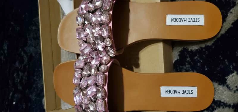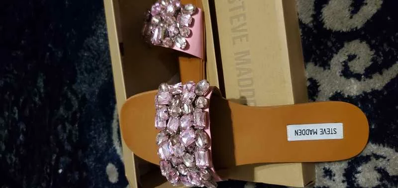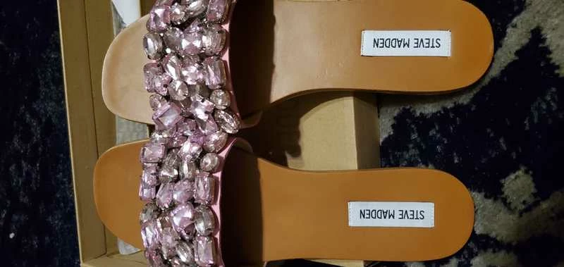 Step into BRIELLE and sparkle as you stride! An array of oversized rhinestones adorn this slide’s dazzling upper for an ultra-glamorous look.
