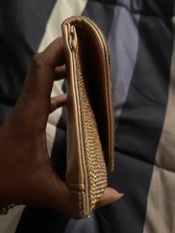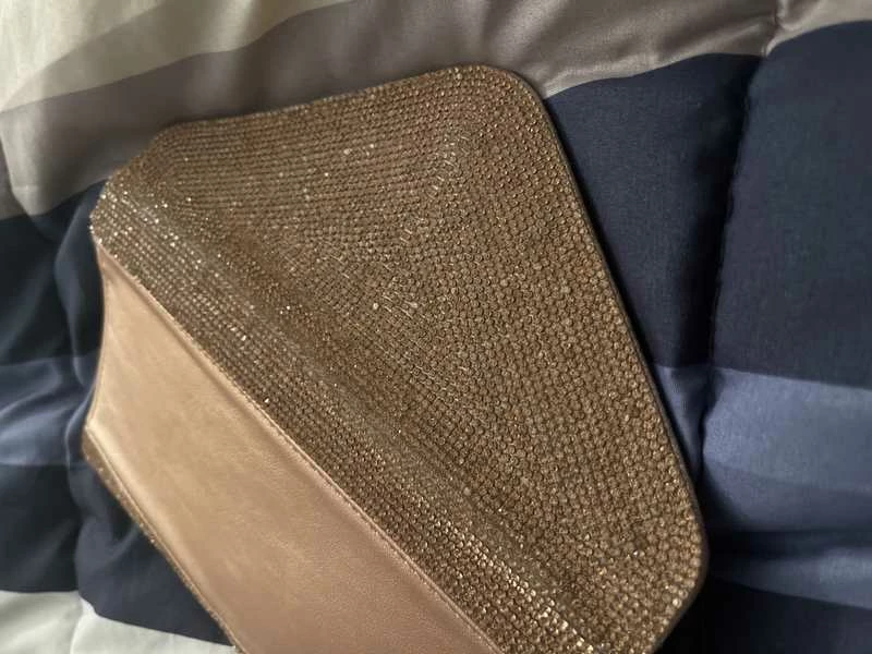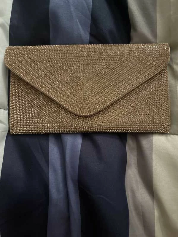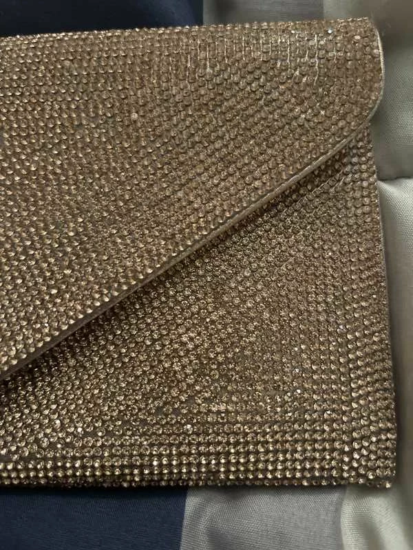Tiny rhinestones blanket BSWAGGER’s face, transforming this otherwise simple envelope bag into a sparkling statement style. Rock this flashy new favorite as a crossbody, or tuck its delicate chain strap inside and carry as a clutch.