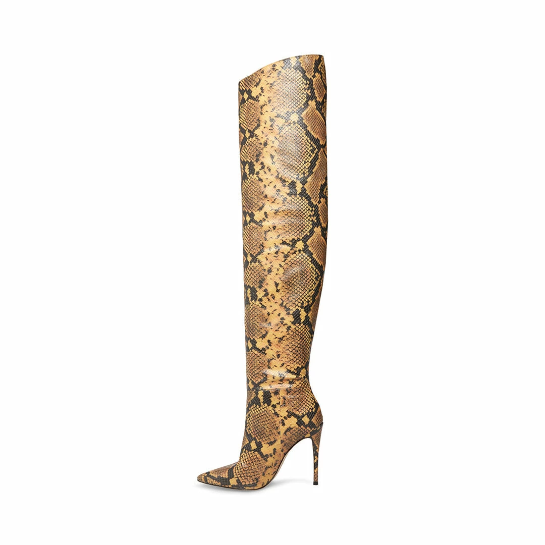 Now this is a statement boot! With a tall shaft, towering heel and exotic faux reptile surfaces, HARLOW serves up high-impact style! Super versatile, this boot can be worn over-the-knee or slouched down for a chic fashion moment.