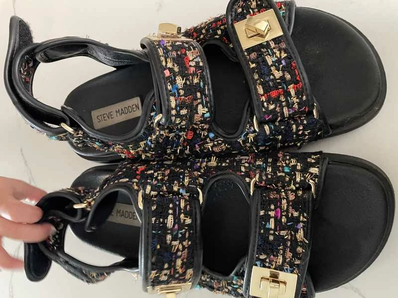Offered in posh uppers with fancy gold tone hardware, this comfort sandal masters the art of high-low style. A luxe look and pampered feel… what more could you want?