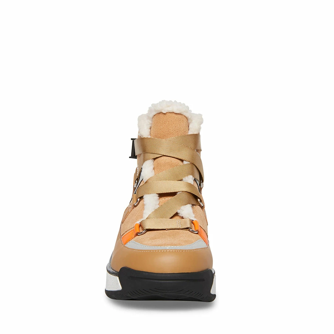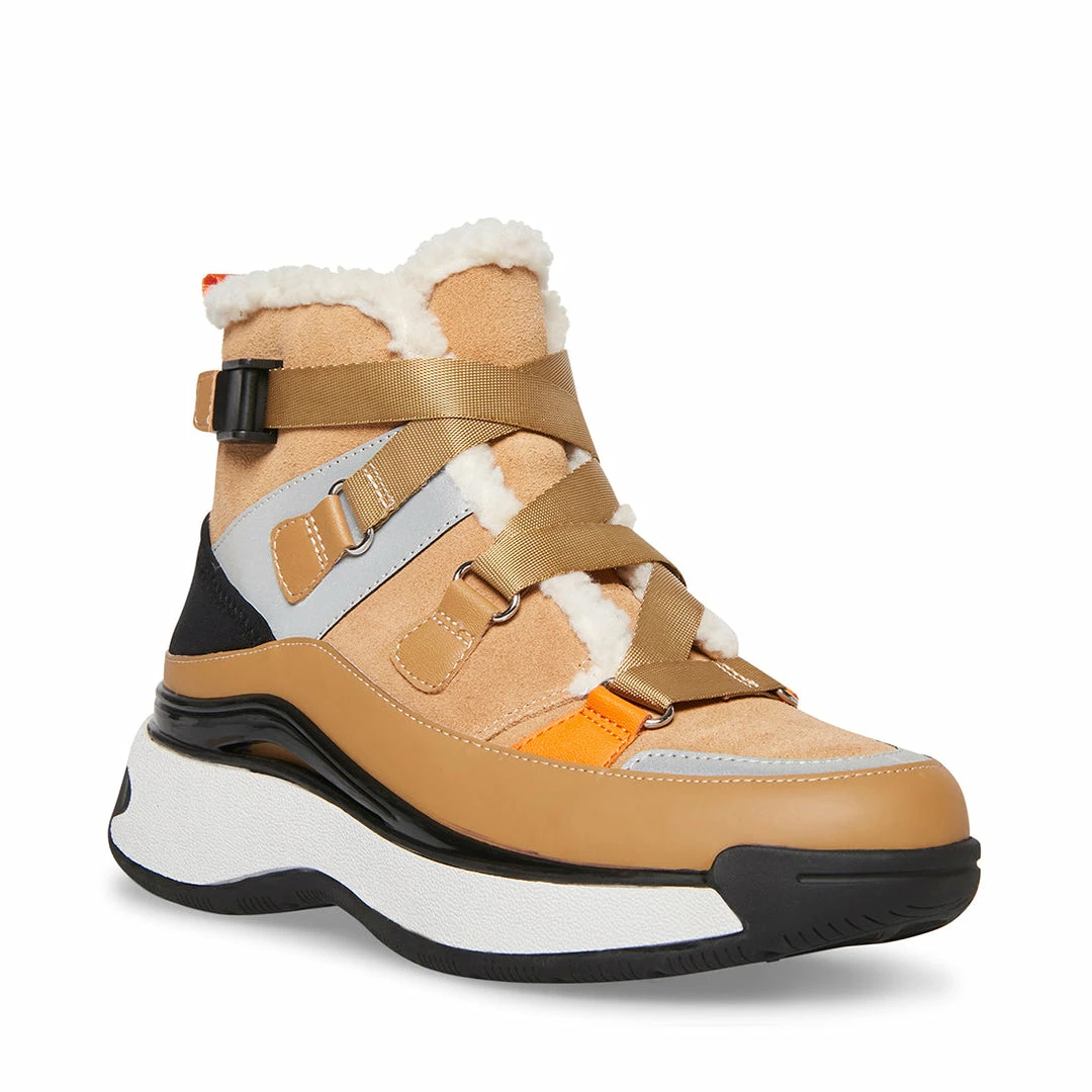 Embrace the outdoors in style! The CHILLED boot is ruggedly chic, featuring a buckled strap closure, cozy faux fur lining and a sporty rubber sole.