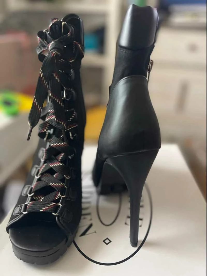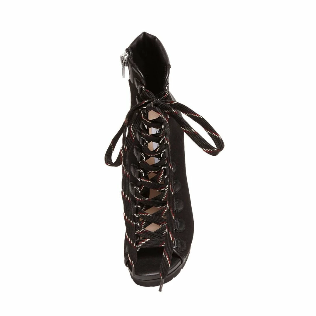Set trends and turn heads in FEARLESS — one of our most fashion-forward hybrid styles! This stunner’s hiker-inspired lacing and rugged lug sole speak to trendy outdoorsy aesthetics, while a tall stiletto heel and open toe serve up sexy edge.