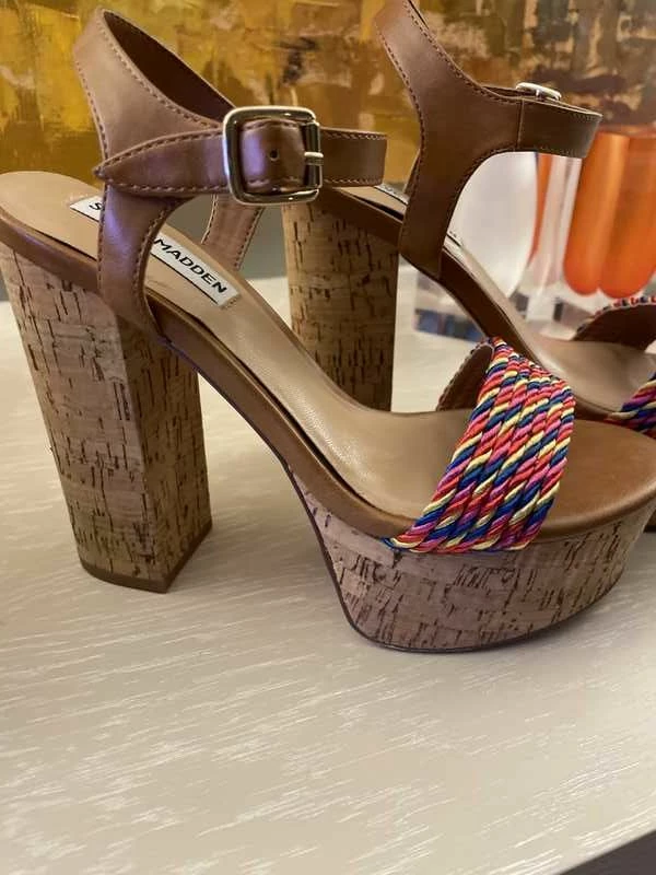 Turn up the temperature by stepping into HEATWAVE! This sandal is hot hot hot, with a towering cork heel and cute strappy upper.