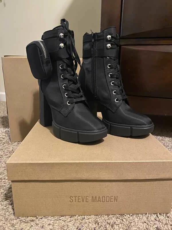 Exude alfa energy as you slay the streets in HERRICK — a new no-nonsense lace-up boot with an ankle-strapped cargo pouch, tall block heel and lots of boss babe attitude.