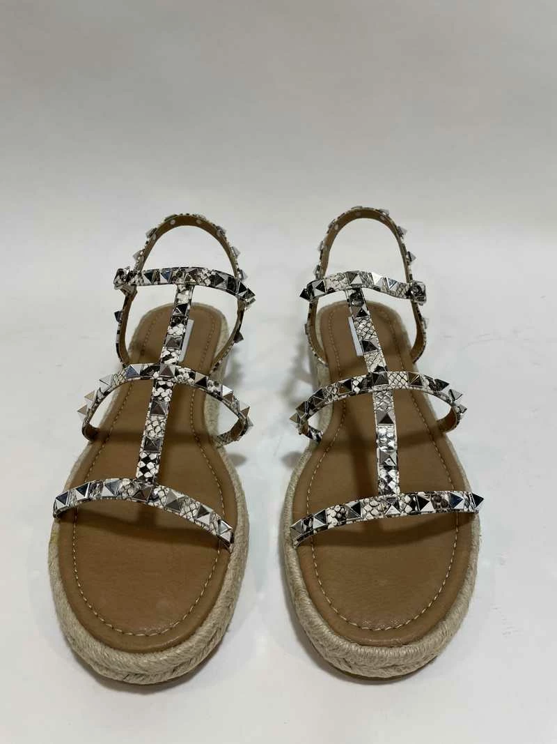 Swap over-the-top gladiators for LUCINE — an easier-to-wear alternative with a flat espadrille sole, simple caged upper and metal pyramid stud embellishment. Sport the style with looks ranging from festival wears to regal Grecian gowns.