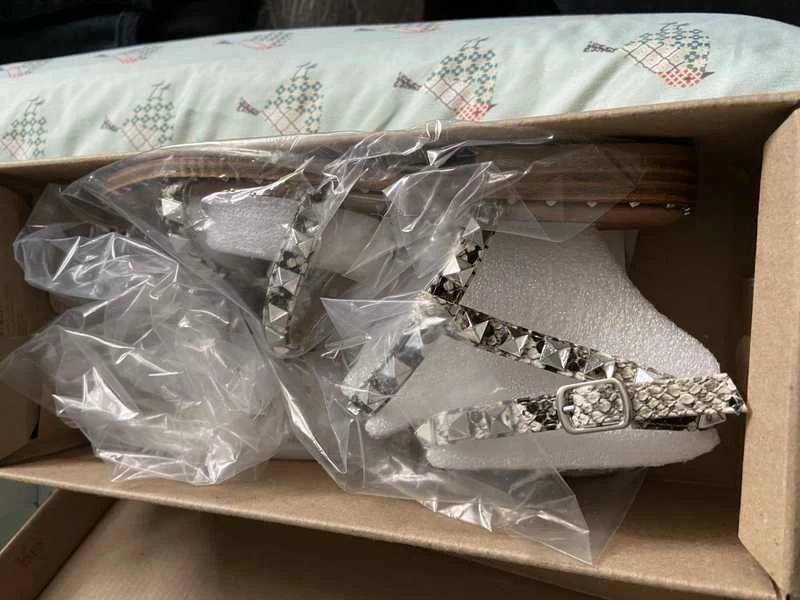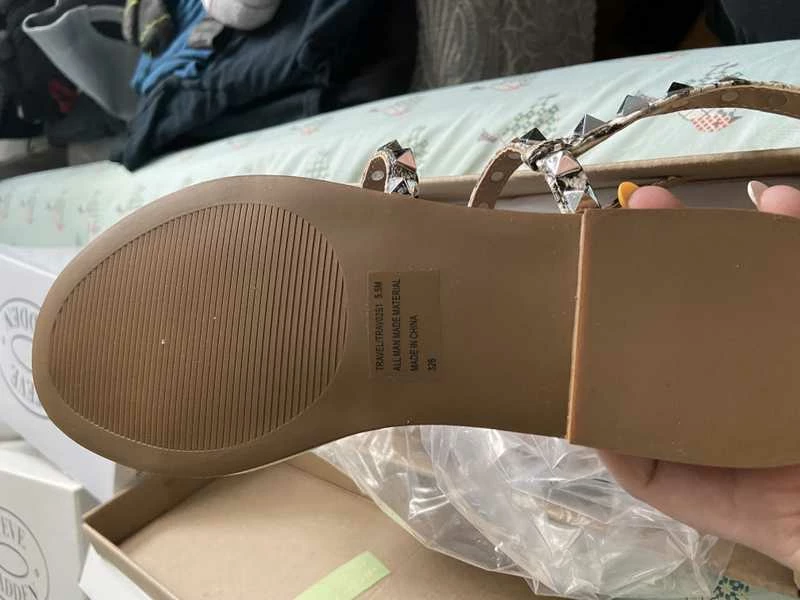 Crossing delicate skinny straps with edgy metal pyramid stud embellishment, the TRAVEL sandal is at once fierce and feminine. Style with a draped maxi dress for a goddess-worthy look.