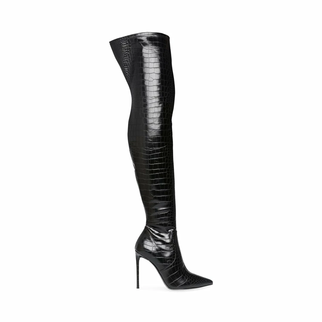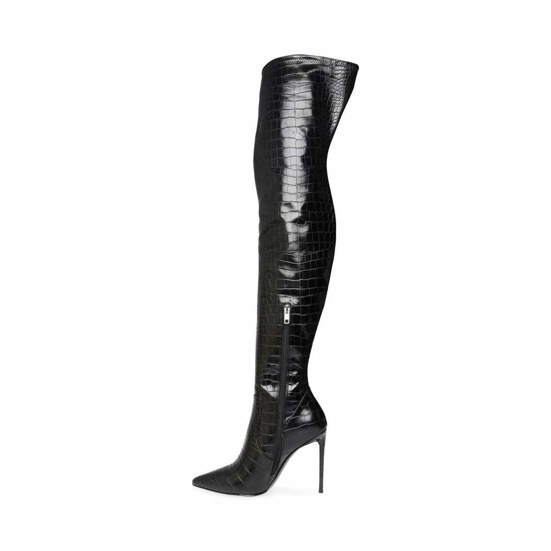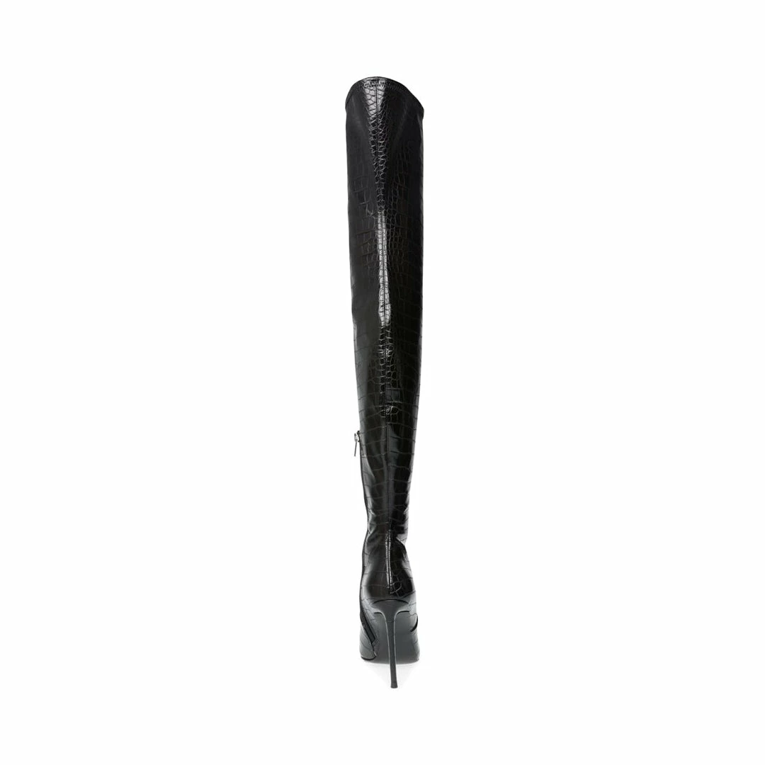 VAVA-voom! A towering stiletto heel, pointed toe and thigh-high shaft make this boot one of the season’s sexiest.