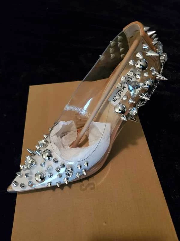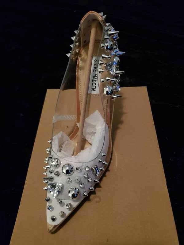 Fit for a punk princess, VERONICKA balances glamour with edgy attitude. Mixed metal embellishment and sparkling rhinestones adorn this pump silhouette, characterized by a pointed toe and sharp stiletto heel.