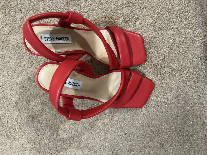 SKU: recurate-6644357759109 Category: RESALE Tags: Brand:Steve Madden, Category:Women's Shoes, Cf-size-5-5, Cf-size-7, Color:Red, Heel Height:Ultra High (4+ inches), Type:Heels, Used