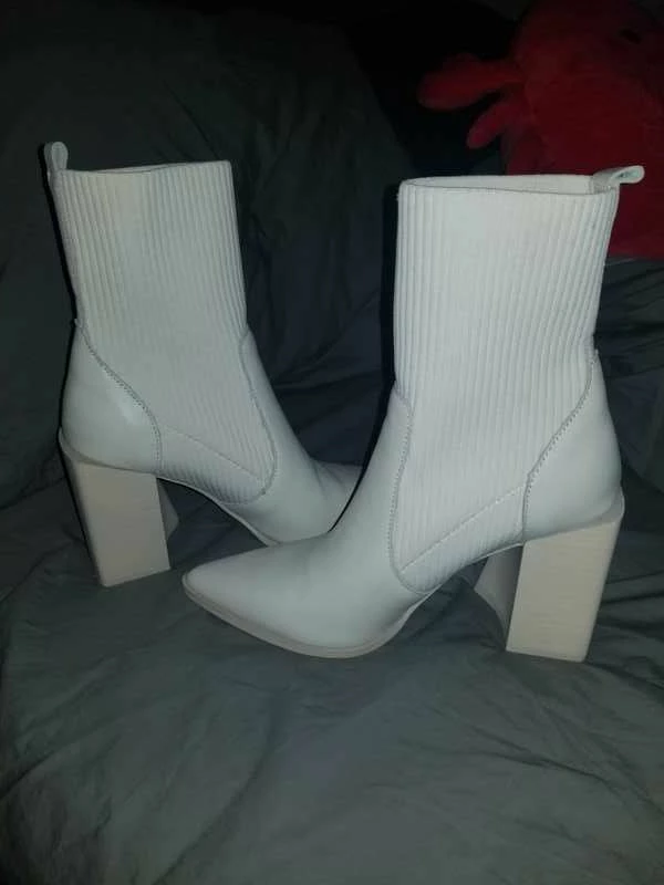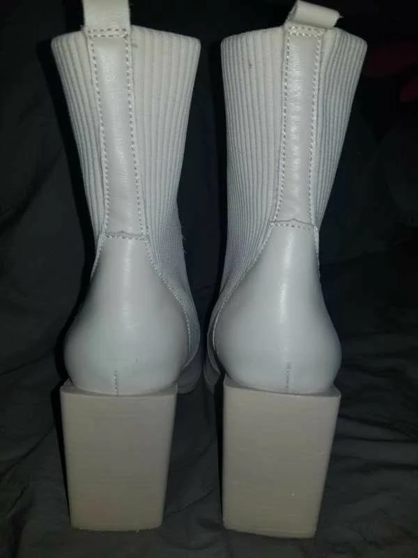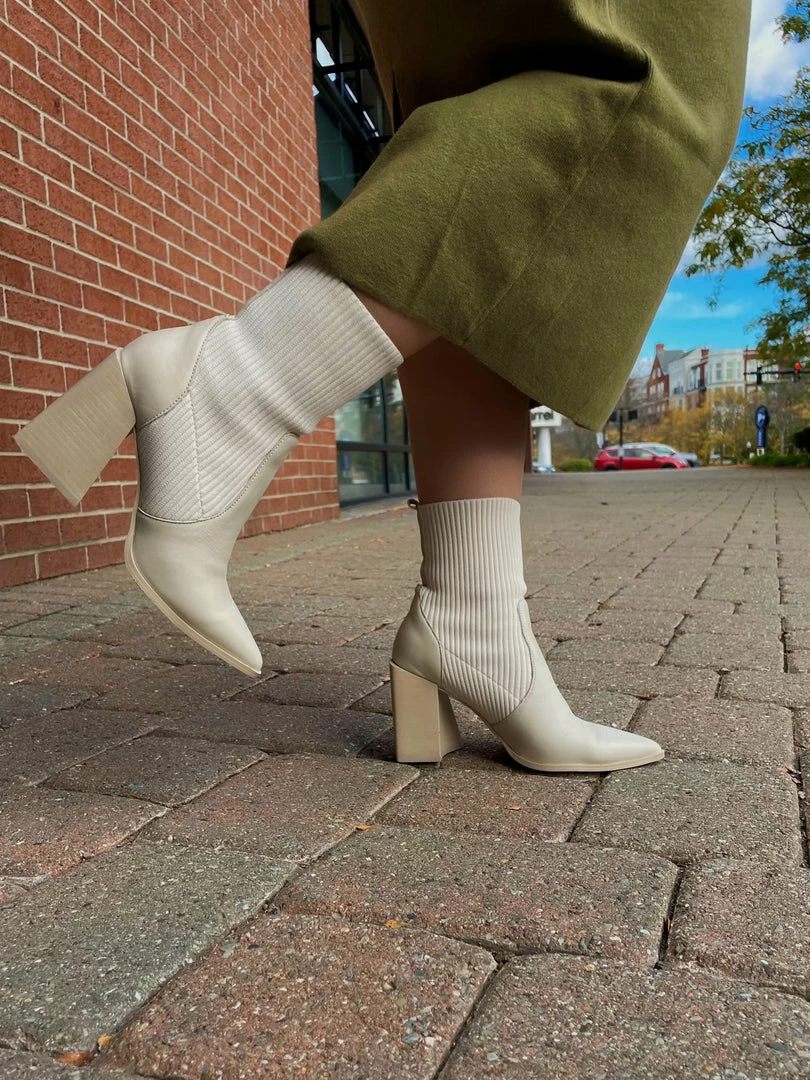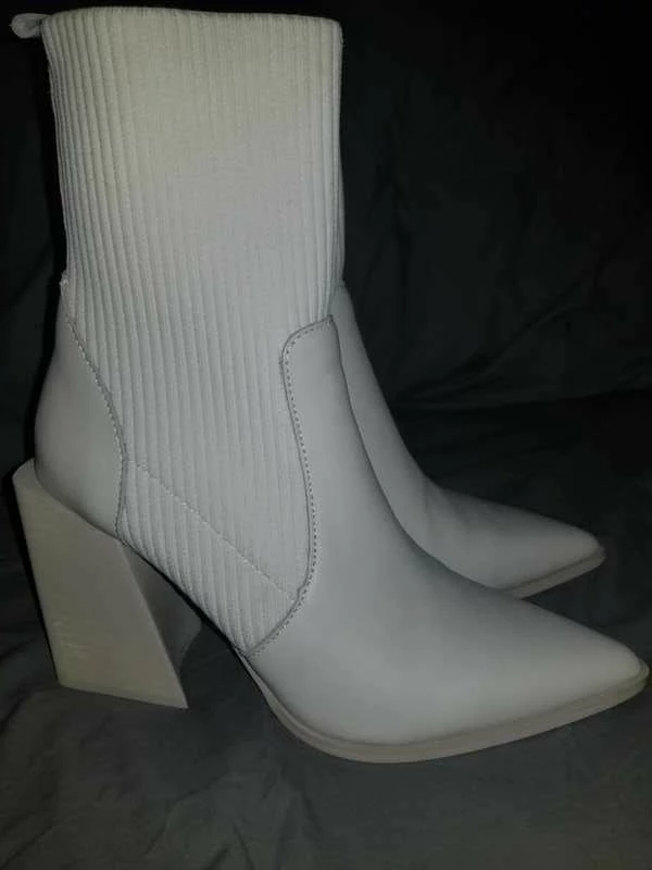 Sharp lines and an avant-garde angular heel give this boot a killer look, while a soft knit shaft allows for easy pull-on entry. A fierce finishing touch for any fashion-lovin’ lady.