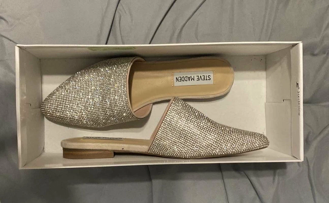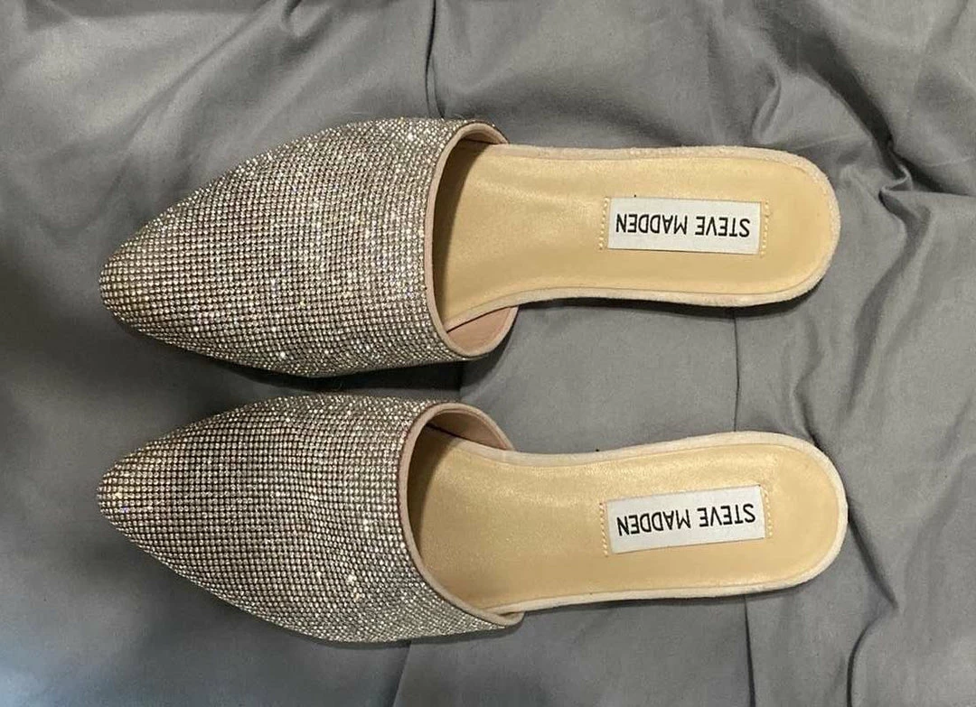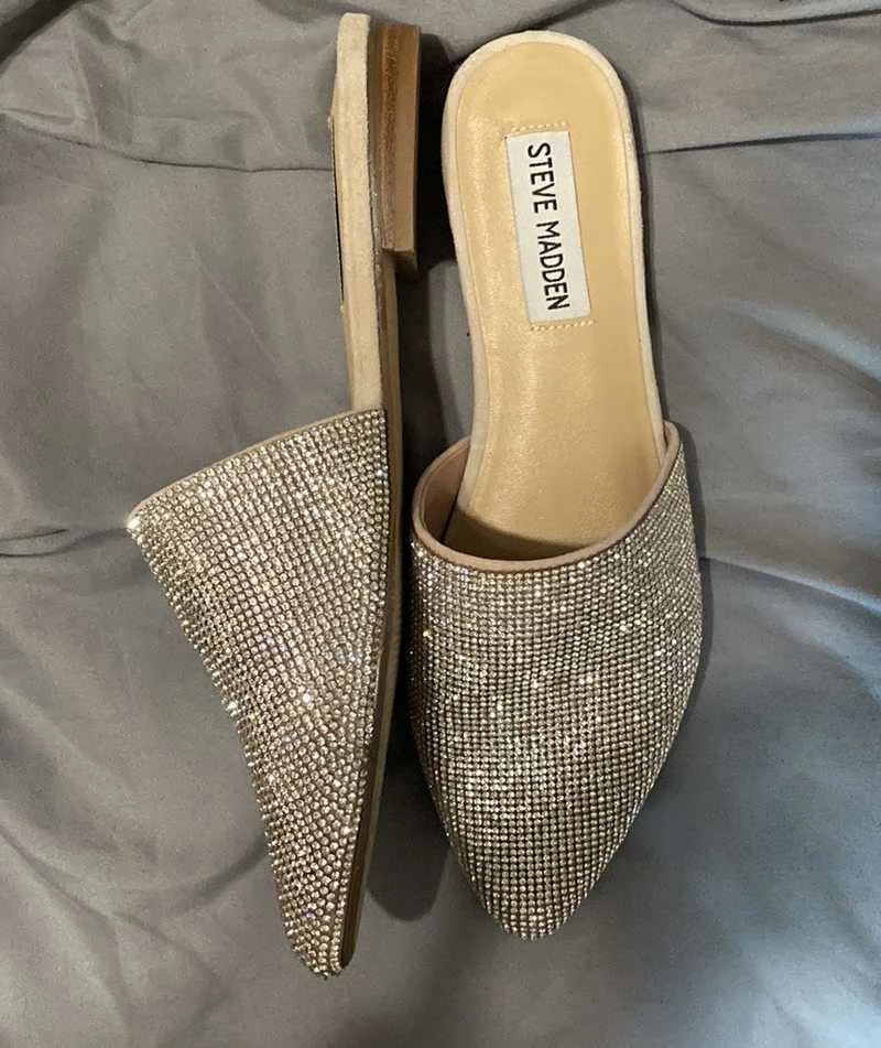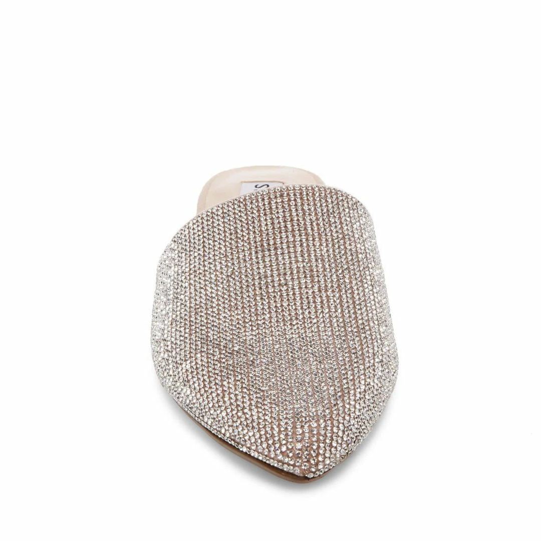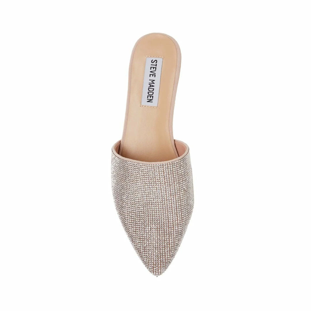 For glamour without fuss, try TRACE-R on for size! This pointed mule is easy to wear, with a flat sole and simple silhouette, while rhinestone-covered surfaces add fancy flair and eye-catching sparkle.