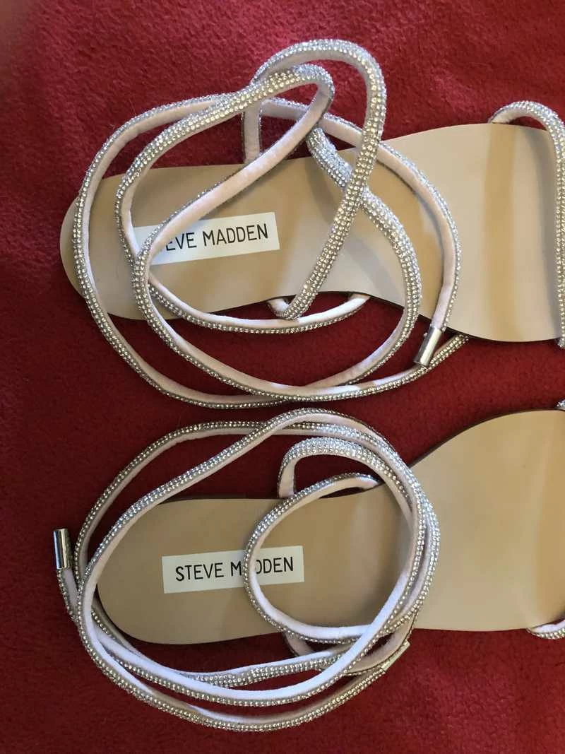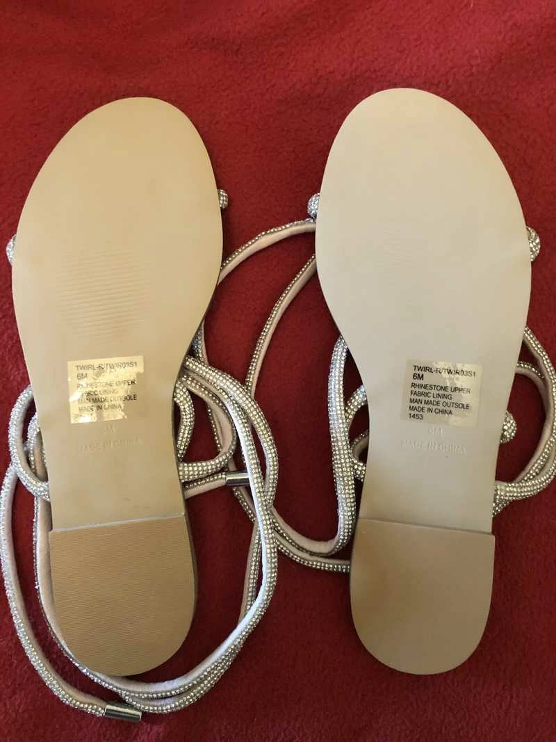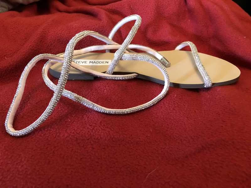 Sparkling rhinestone embellishment transforms this easy-chic flat into an eye-catching statement sandal that’ll add just the right amount of flash to warm weather ensembles.