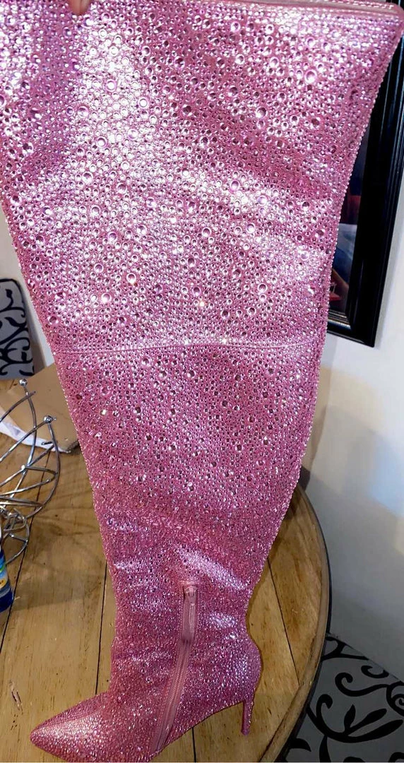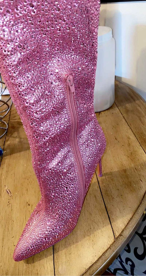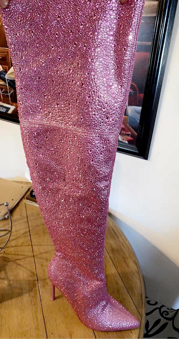 The next time you want to sparkle—day or night—you can count on VIVIANNE. These striking thigh-highs are designed with a sleek pointed-toe and towering stiletto heel.