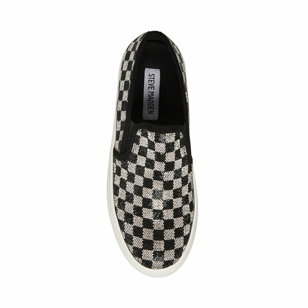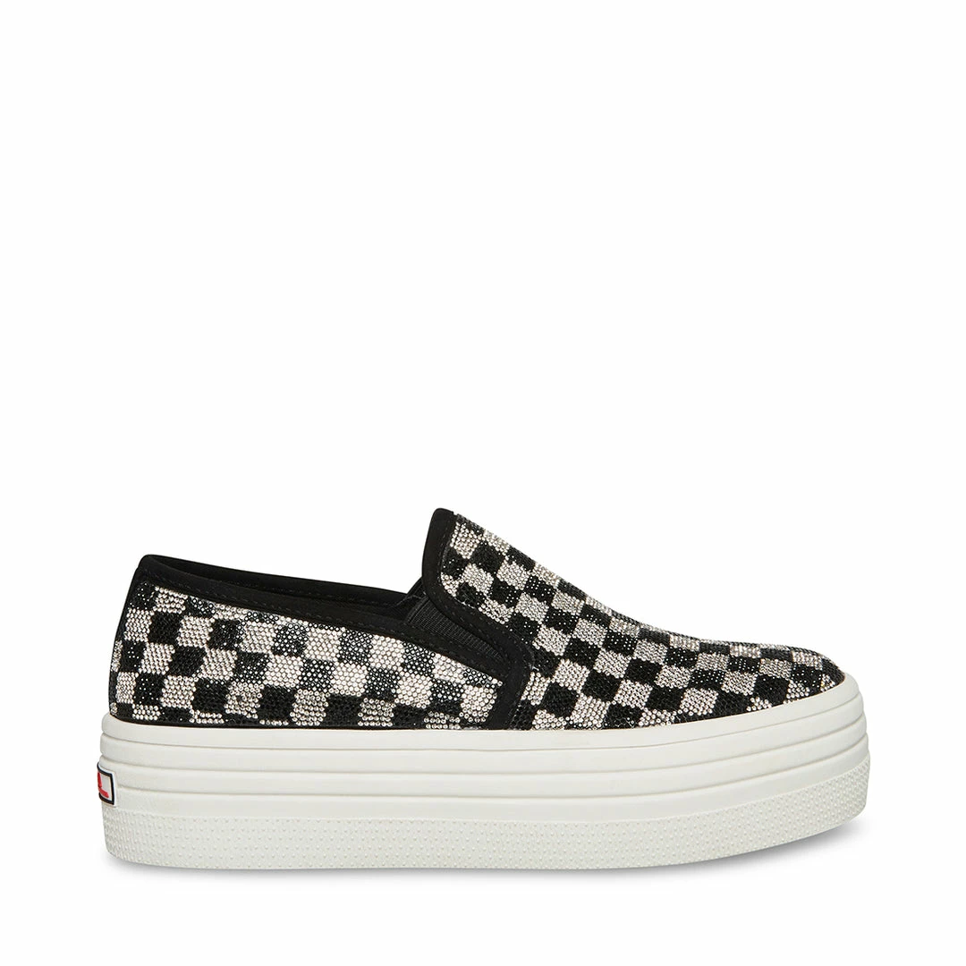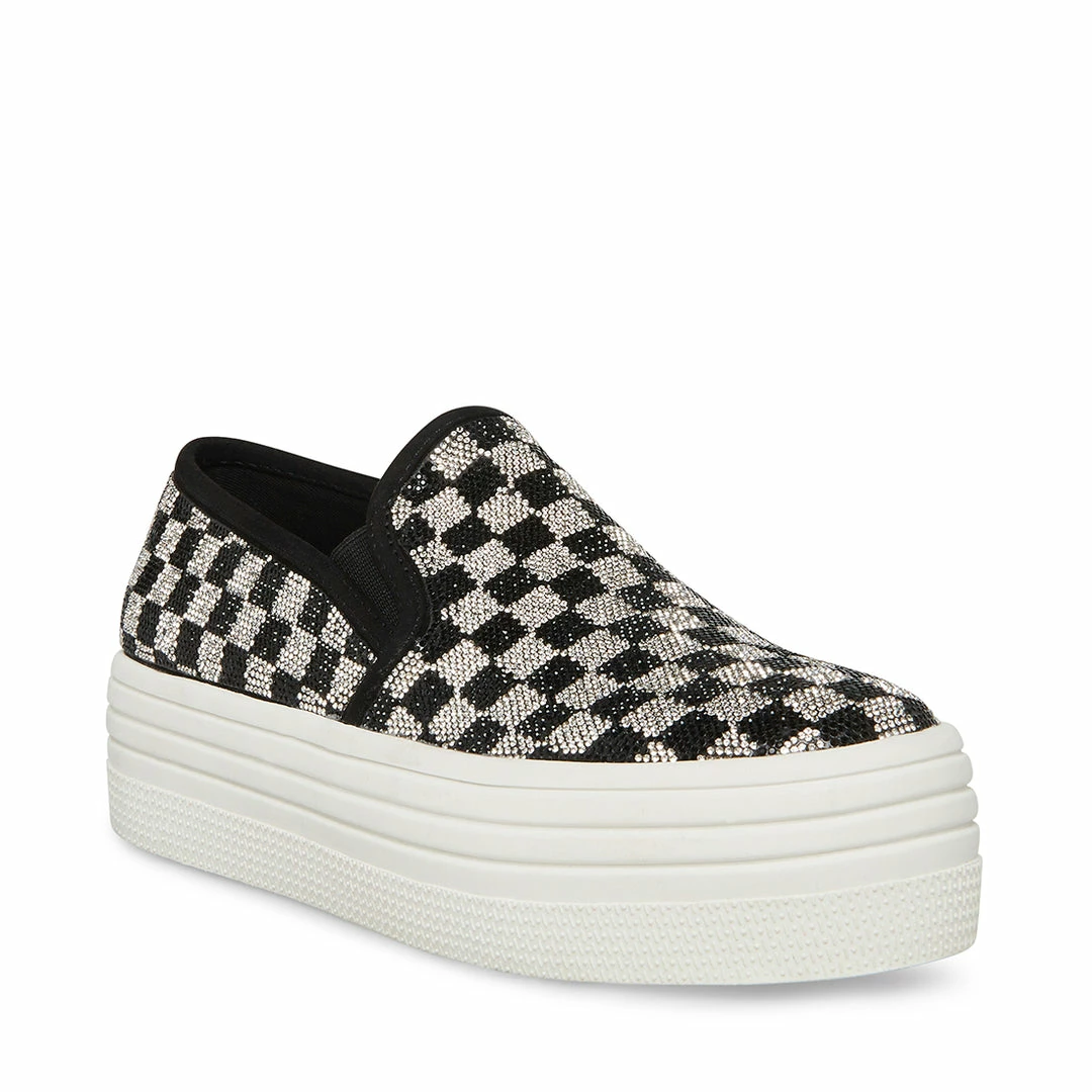 A flat platform sole gives the BOLD slip-on sneaker a distinct silhouette while the rhinestone embellishments add plenty of sparkle.