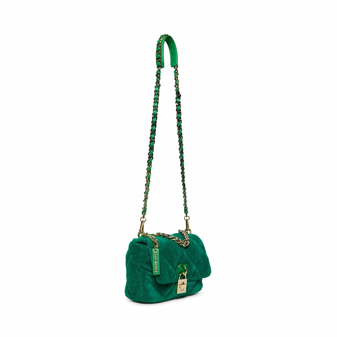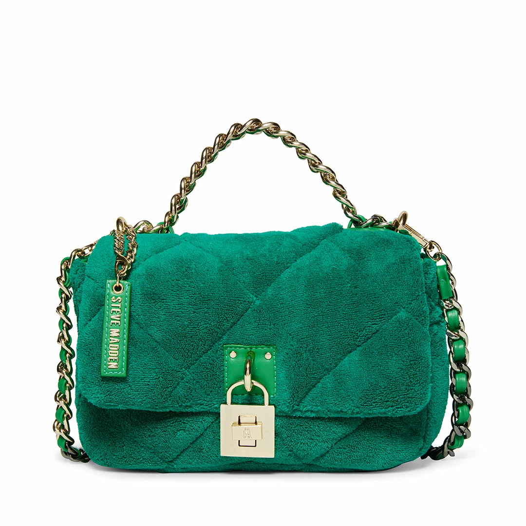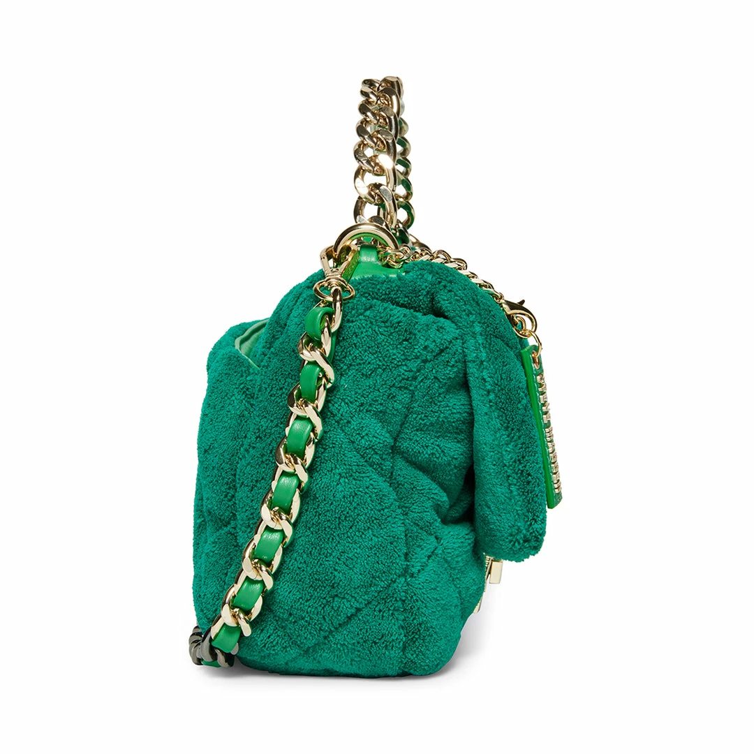 The BTERRA handbag gets its puffy silhouette from the diamond quilted terry cloth exterior finished with a chain handle and a matching detachable crossbody strap.