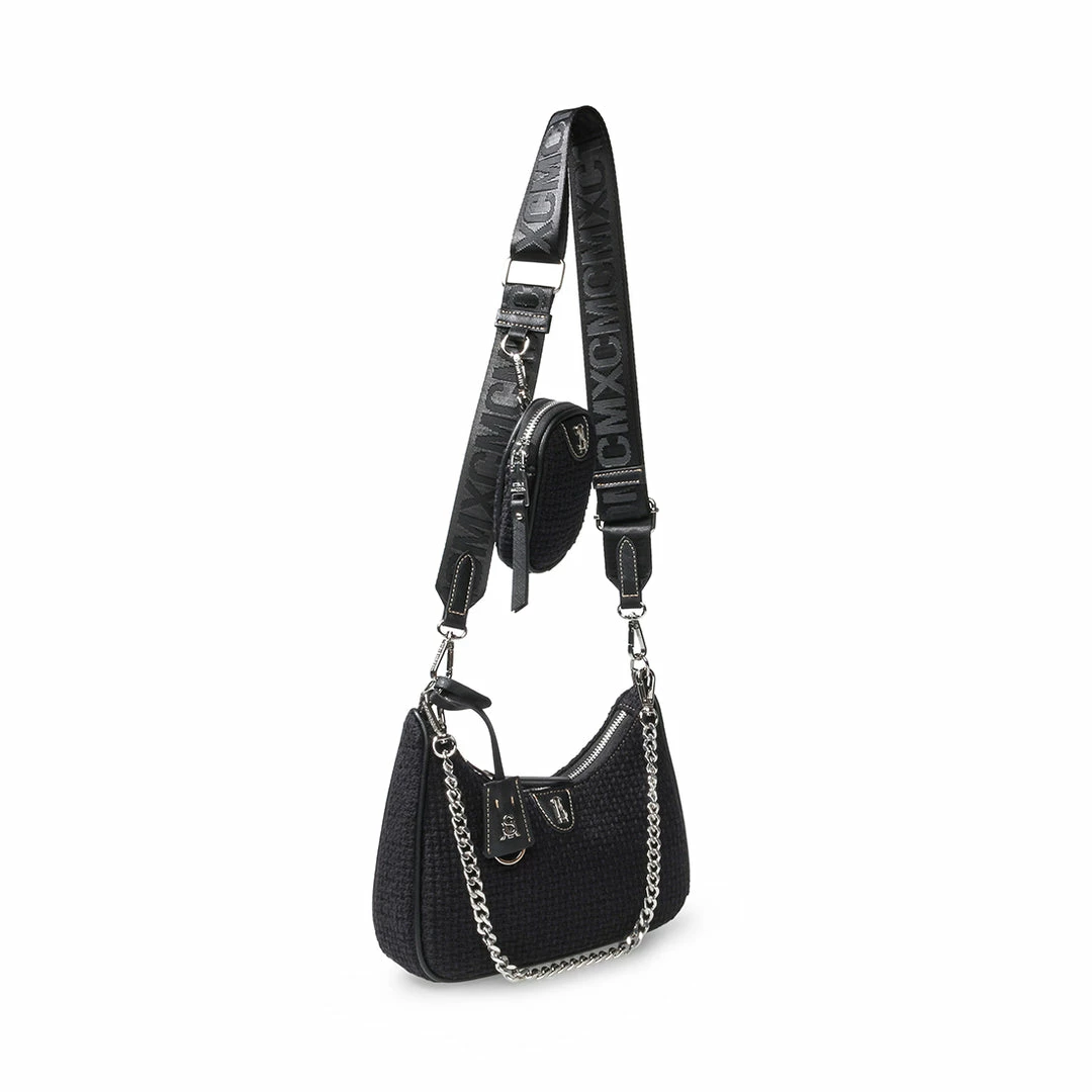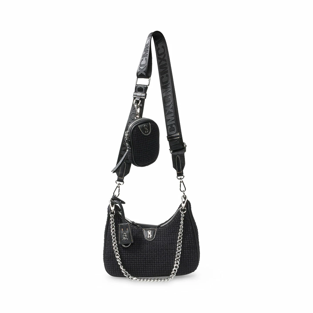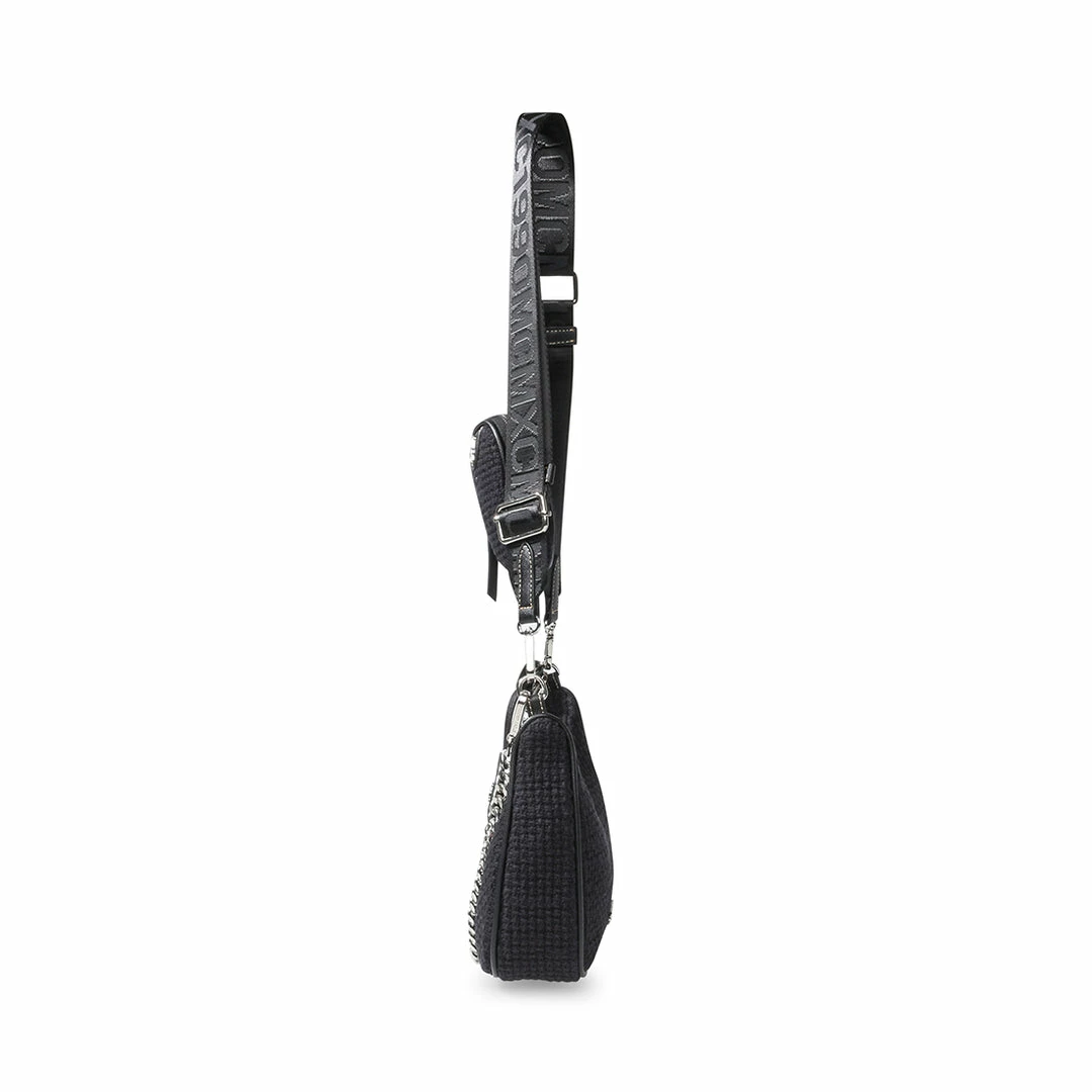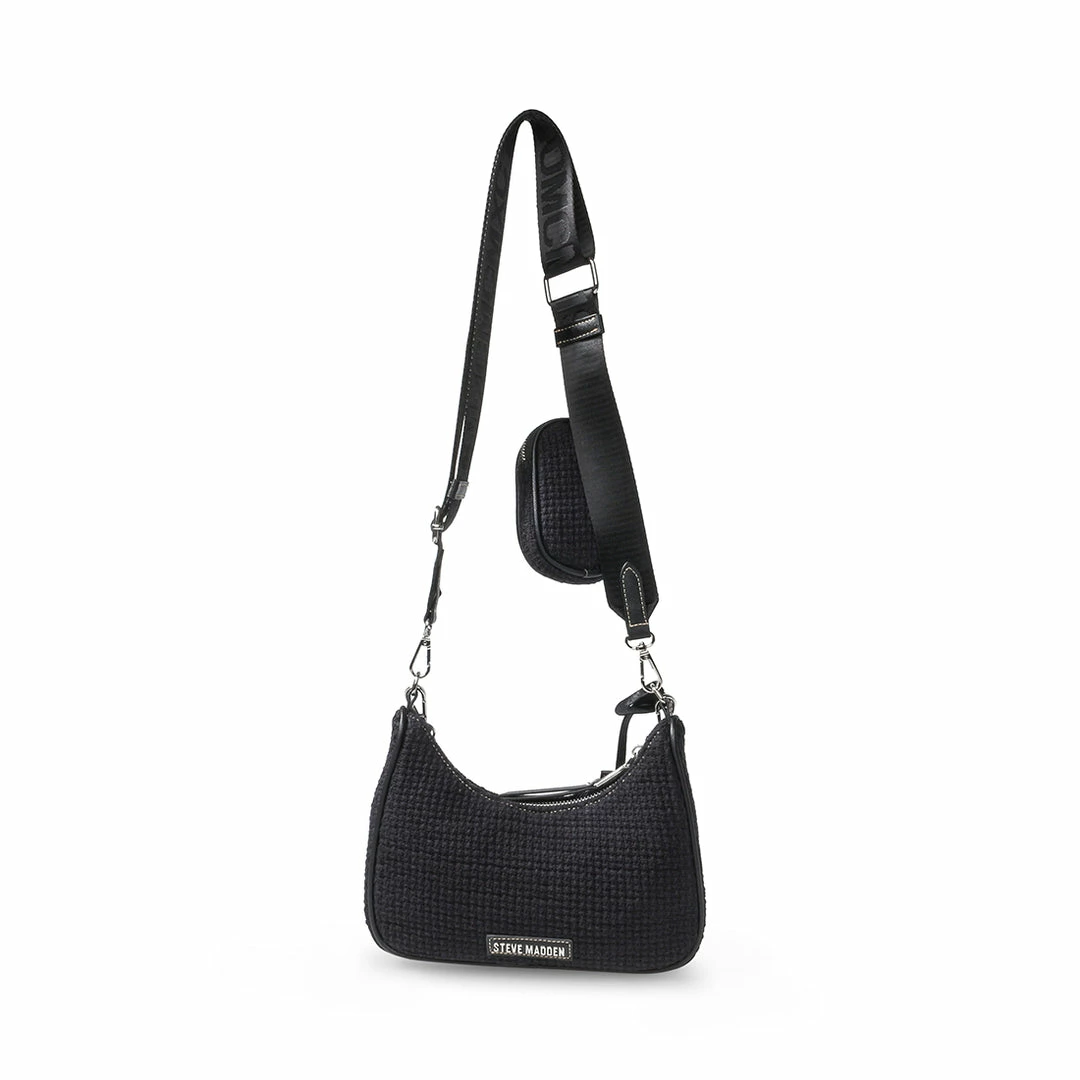 - Detachable adjustable webbing strap with logo text for crossbody and over-the-shoulder style