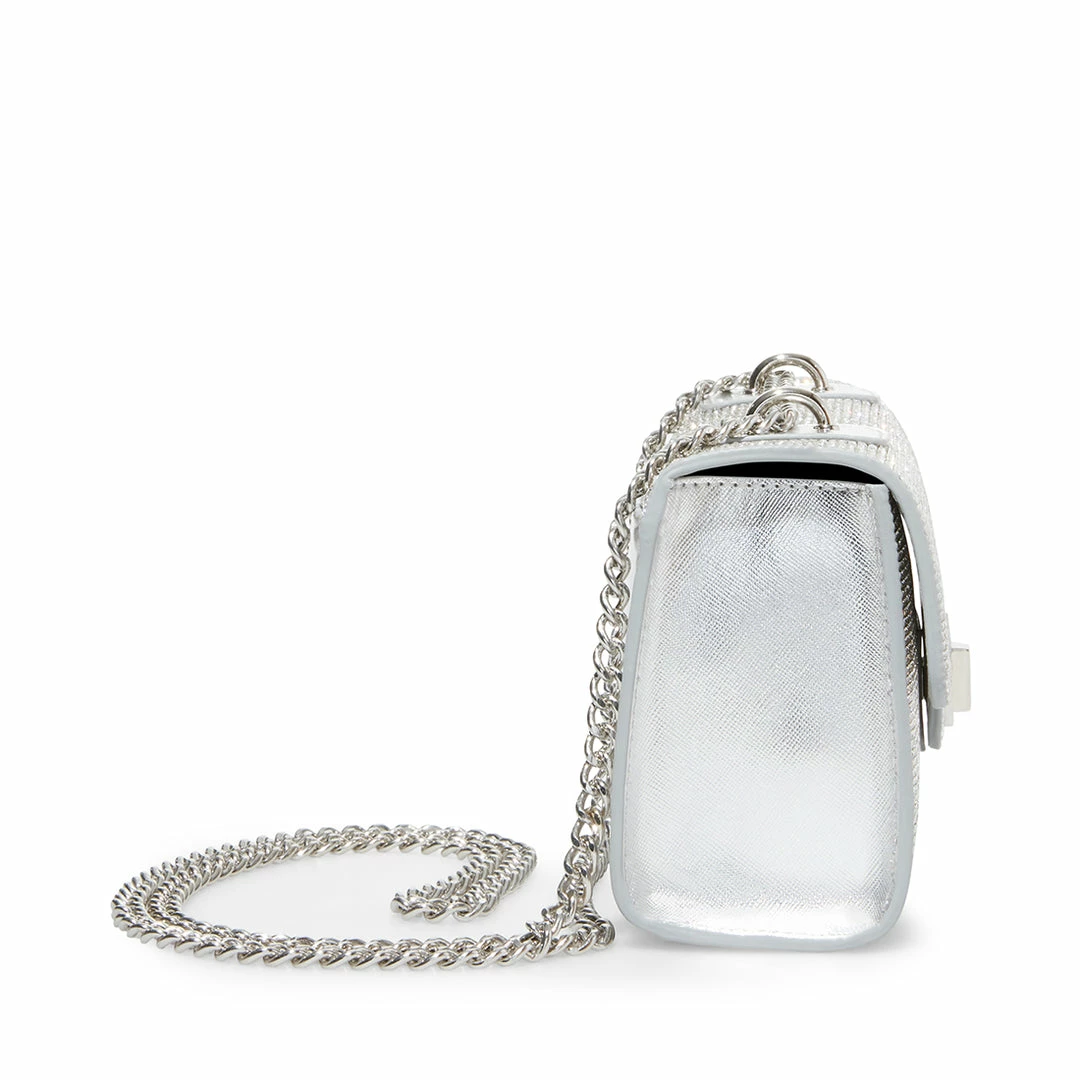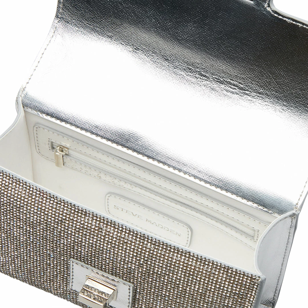 Suspended from a chain crossbody strap and blanketed in sparkling rhinestones, BWONDERS is a flap bag with flair! Haul essentials in this eye-catching carrier to glam-up any ensemble.