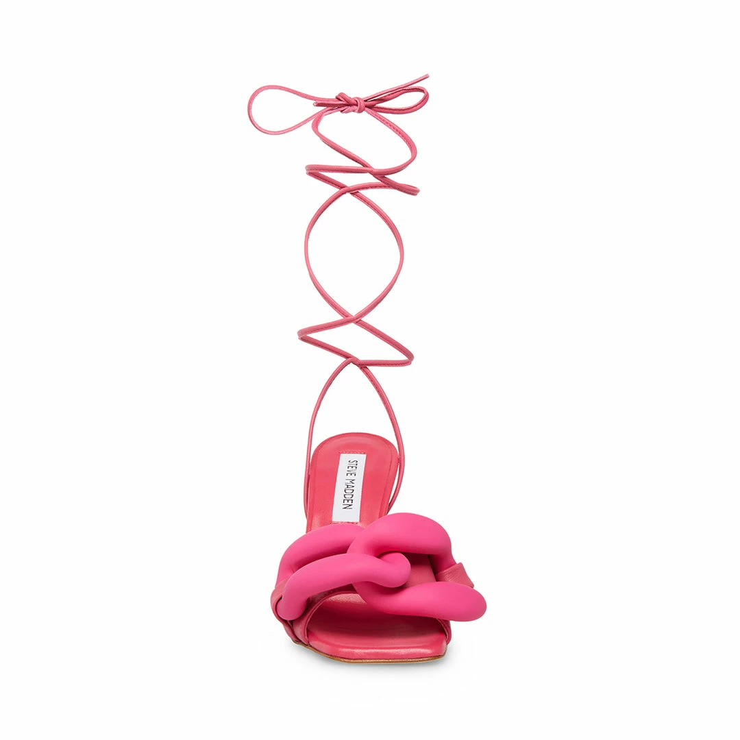 You’ll want to dress from the bottom up with CASSY. This flirty lace-up sandal features chunky chain details and a chic flared heel.