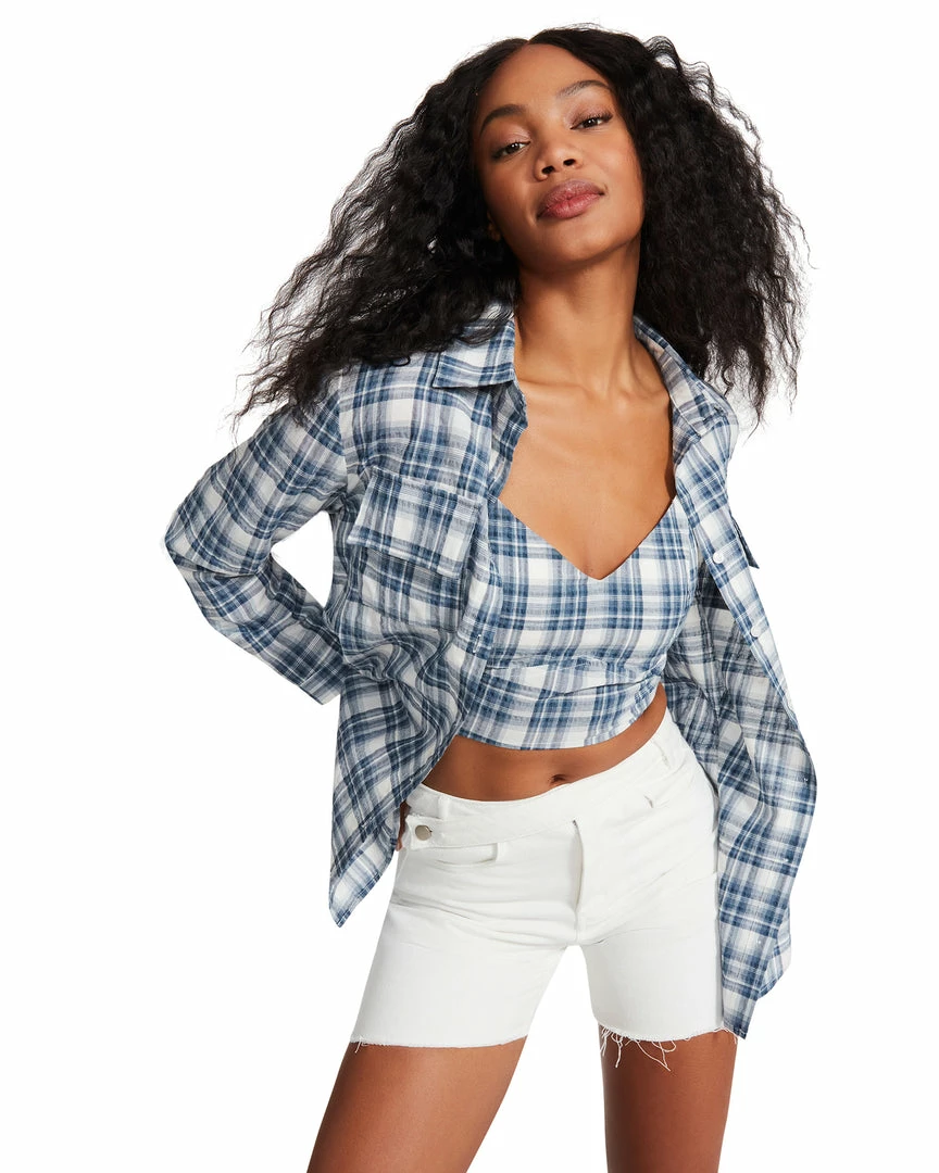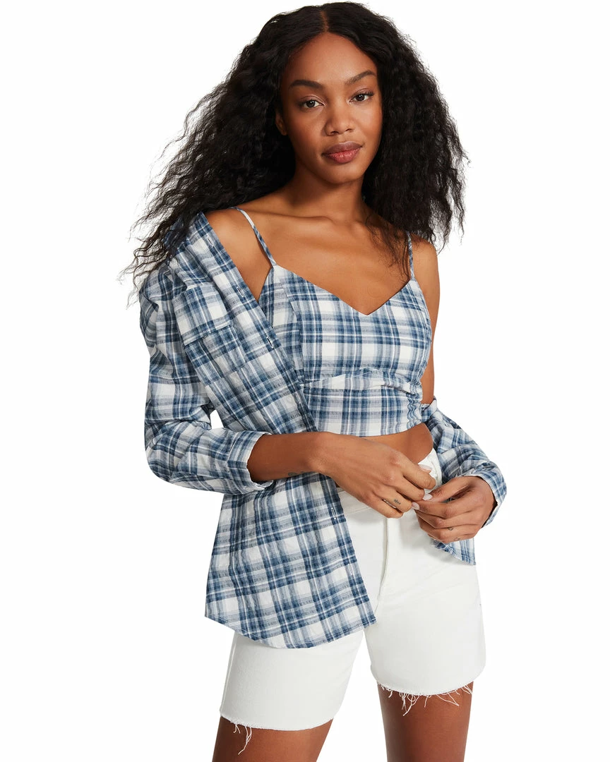 The perfect throw-on-and-go option your wardrobe is missing is a cool checkered-print shirt. This button-up style can be worn over our matching Checkered Tank.