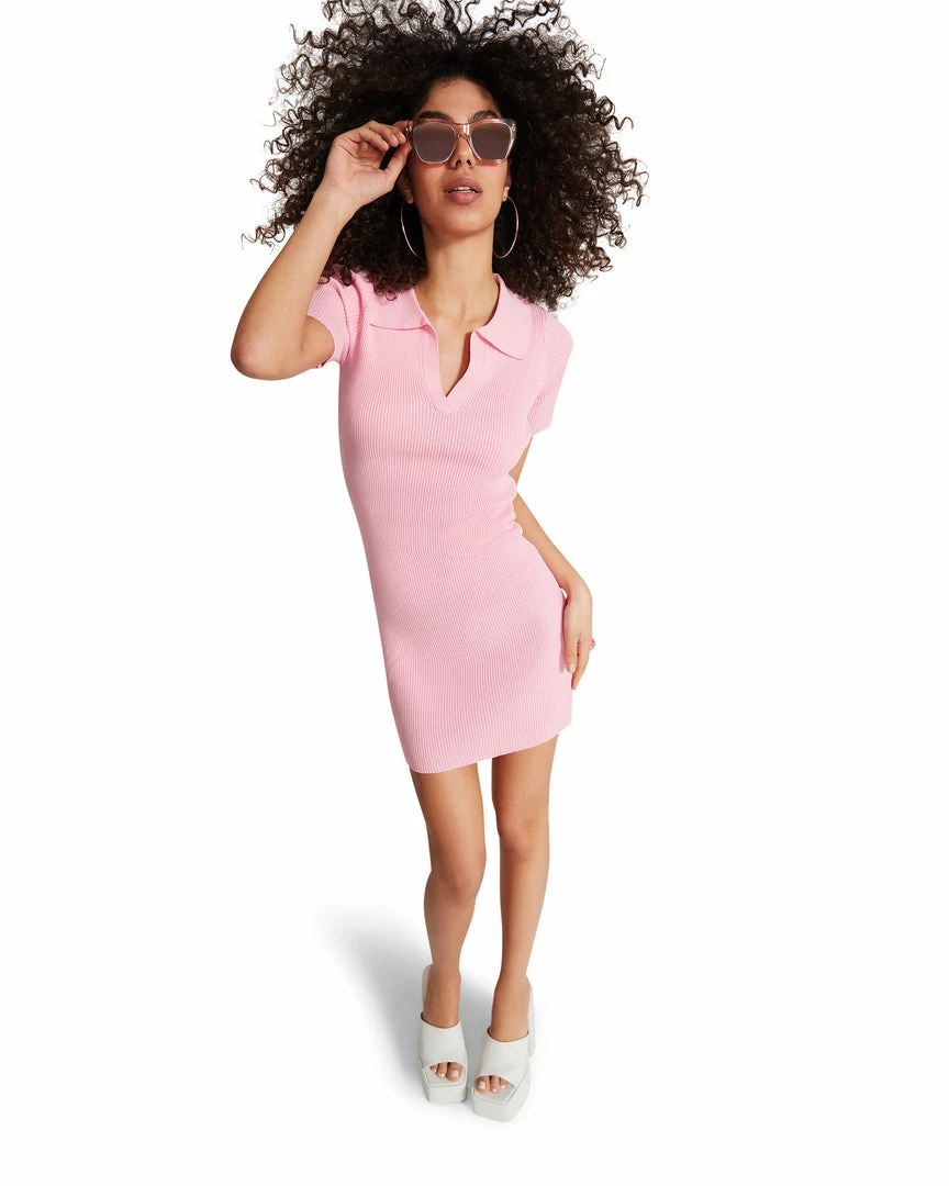 Channel your inner prep school vibes with the Collared Ribbed Dress. It has sweet cap sleeves, a body-hugging fit, and a simple collar.