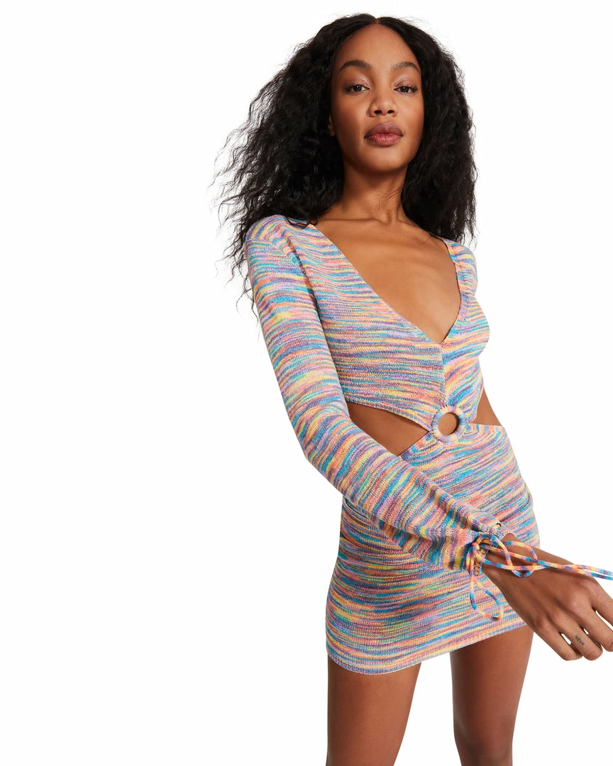 You’ll be set to stun in this sexy mini, featuring a low scoop back and an alluring keyhole design. Complete this look with the BSCREEN bag.