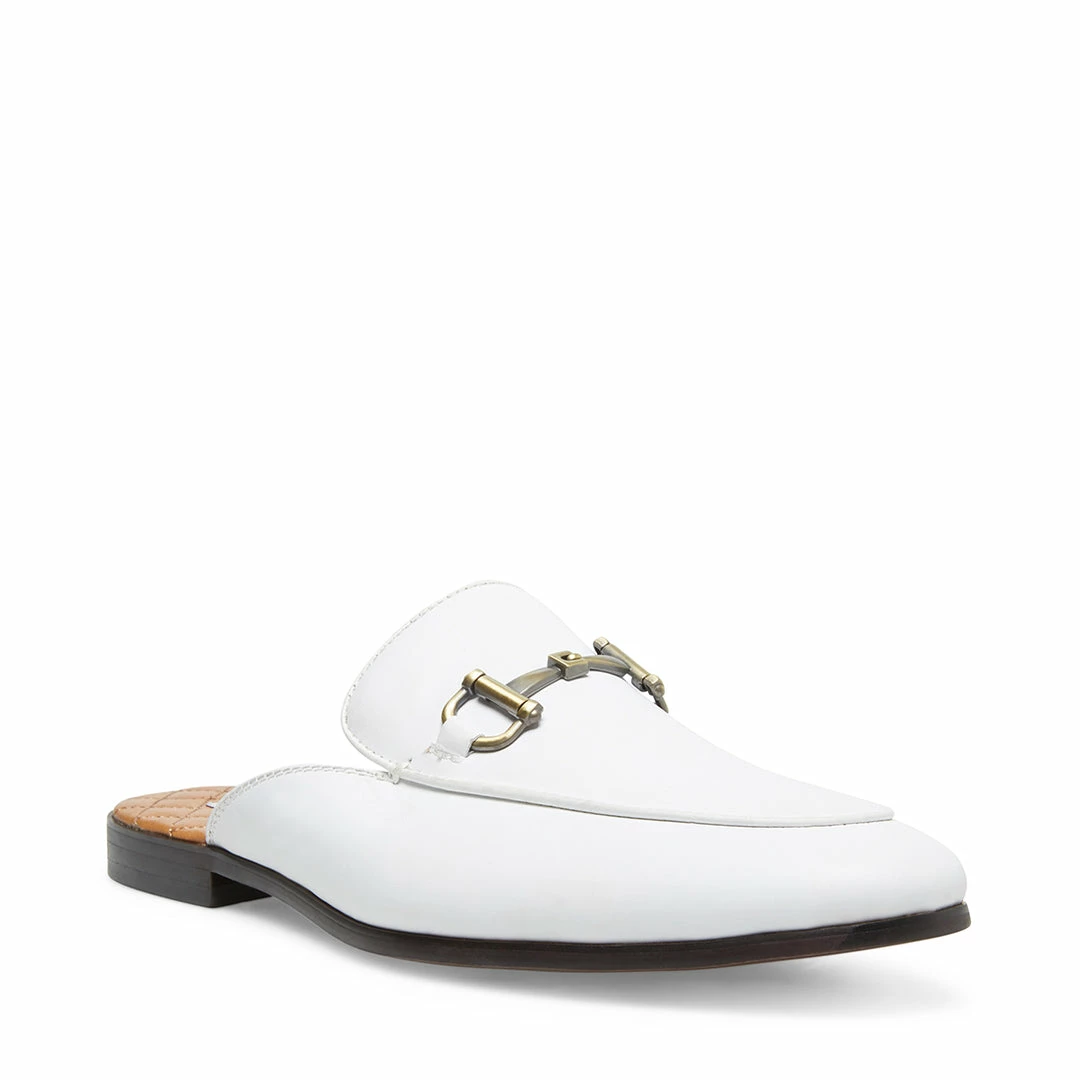 With a backless silhouette and fancy horse bit ornament, this leather mule oozes laid back luxury. A quilted interior emphasizes the style’s slipper-like vibe while cushioning each step.