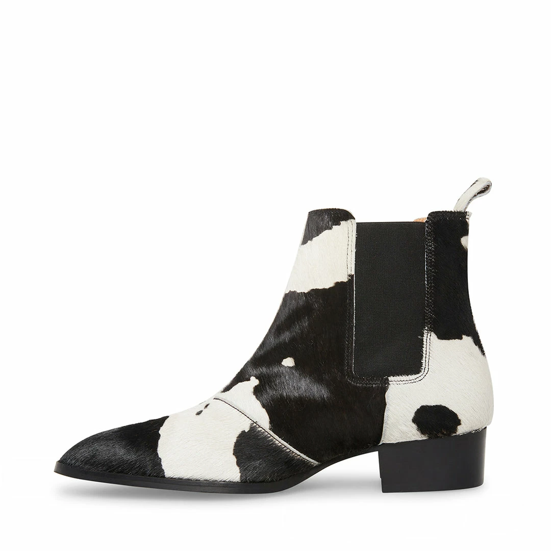 Fashion-lovin’ fellas are sure to go nuts over DEX-P, as this Chelsea boot makes a major statement with hairy leopard-spotted surfaces. Elastic gussets allow for easy pull-on entry and a short heel lends rock and roll vibes.