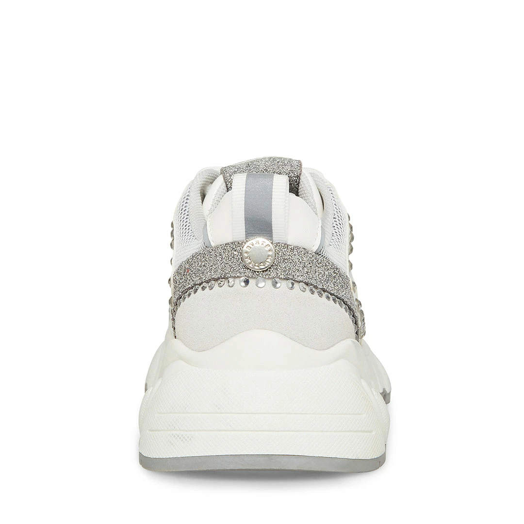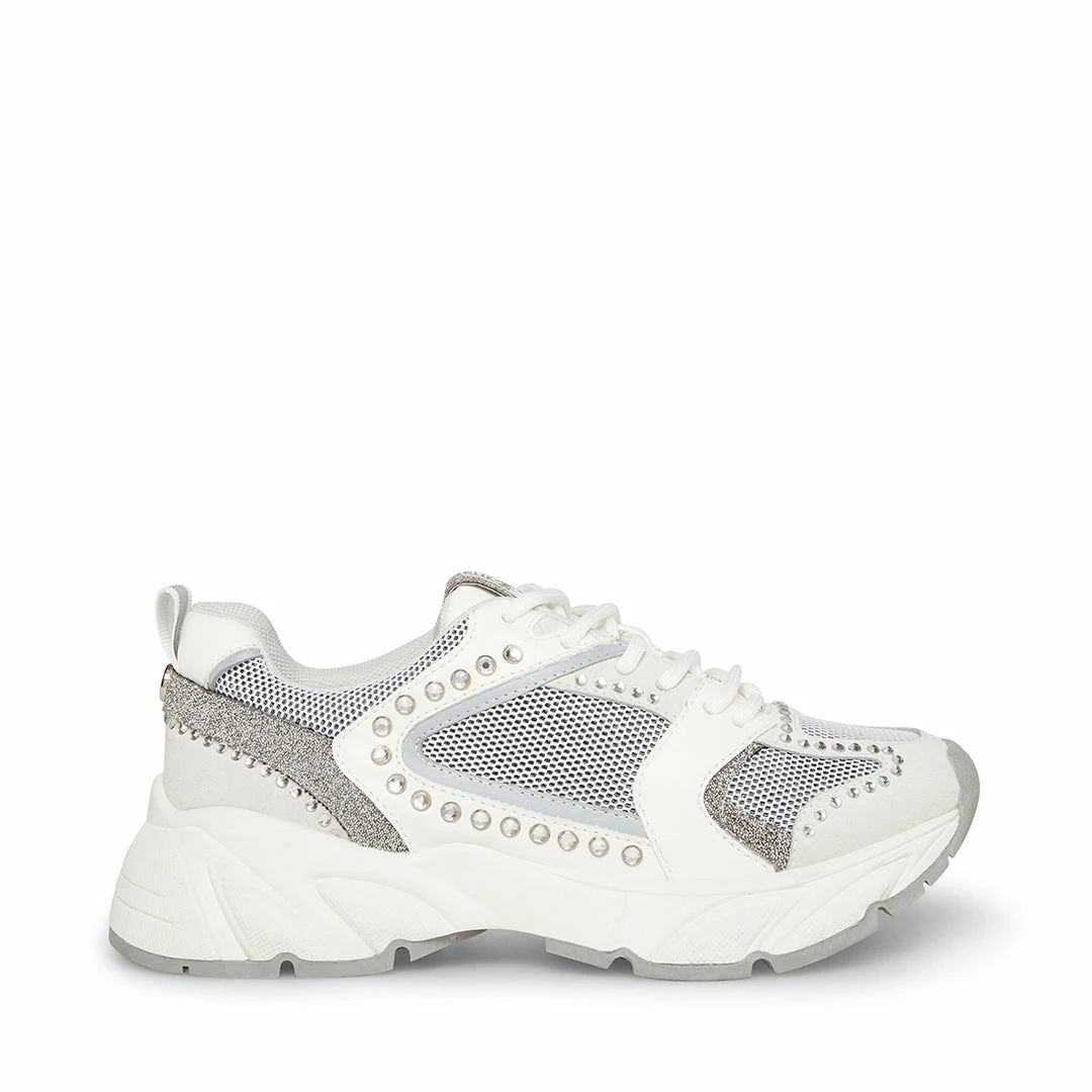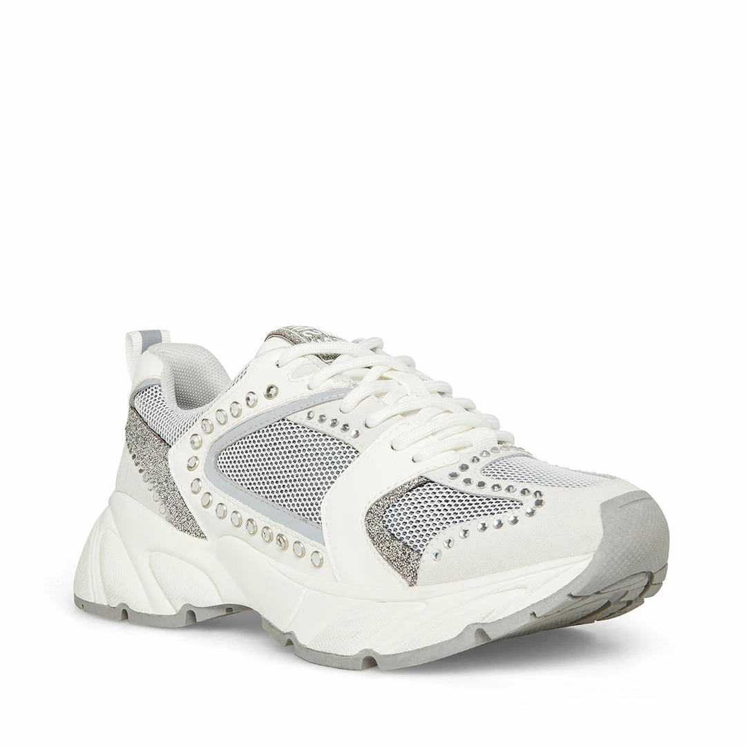 Rhinestones accent the mesh and glitter panels on the ISSAC-R sneaker for a textured effect, finished with a chunky molded sole.