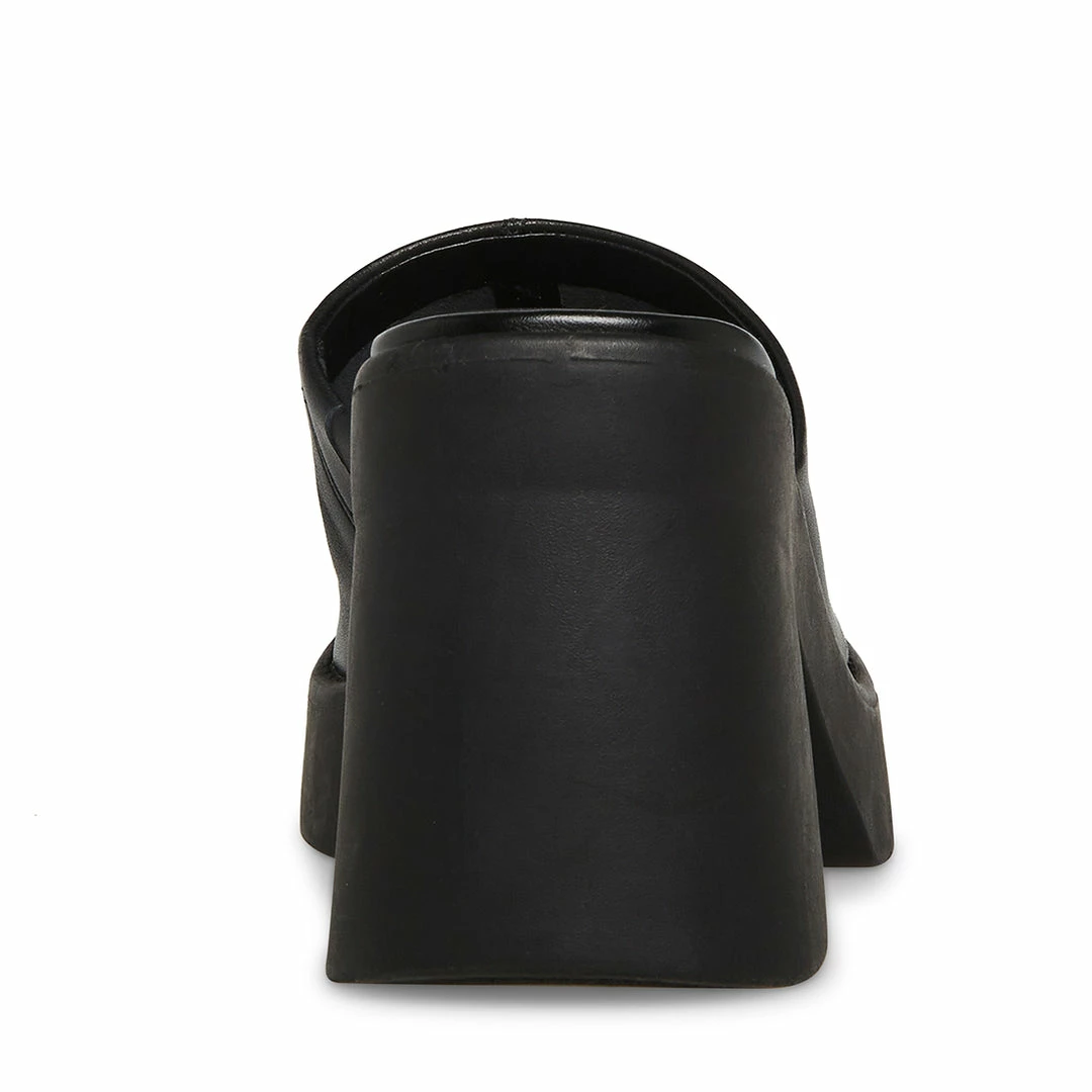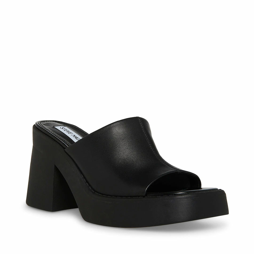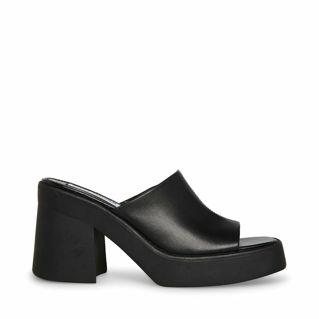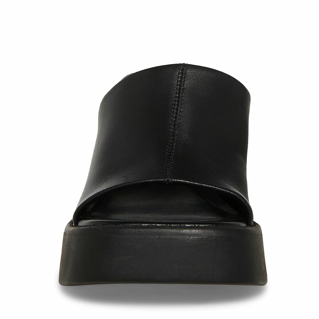 The KANE single-strap slide sandal sits on top of a substantial platform heel finished with a square toe.