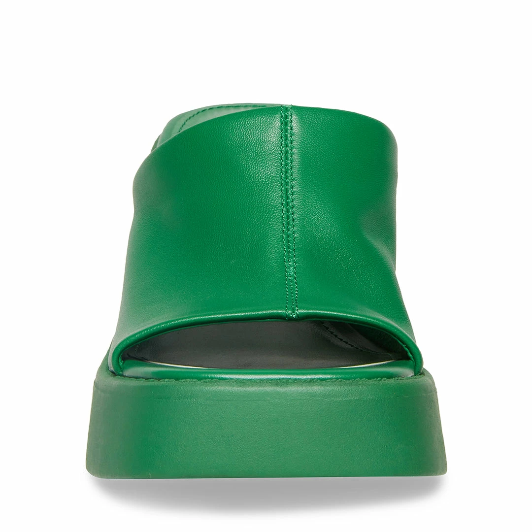 The KANE single-strap slide sandal sits on top of a substantial platform heel finished with a square toe.