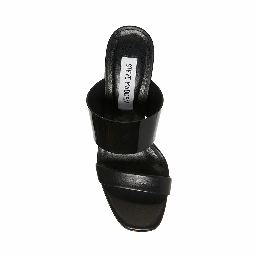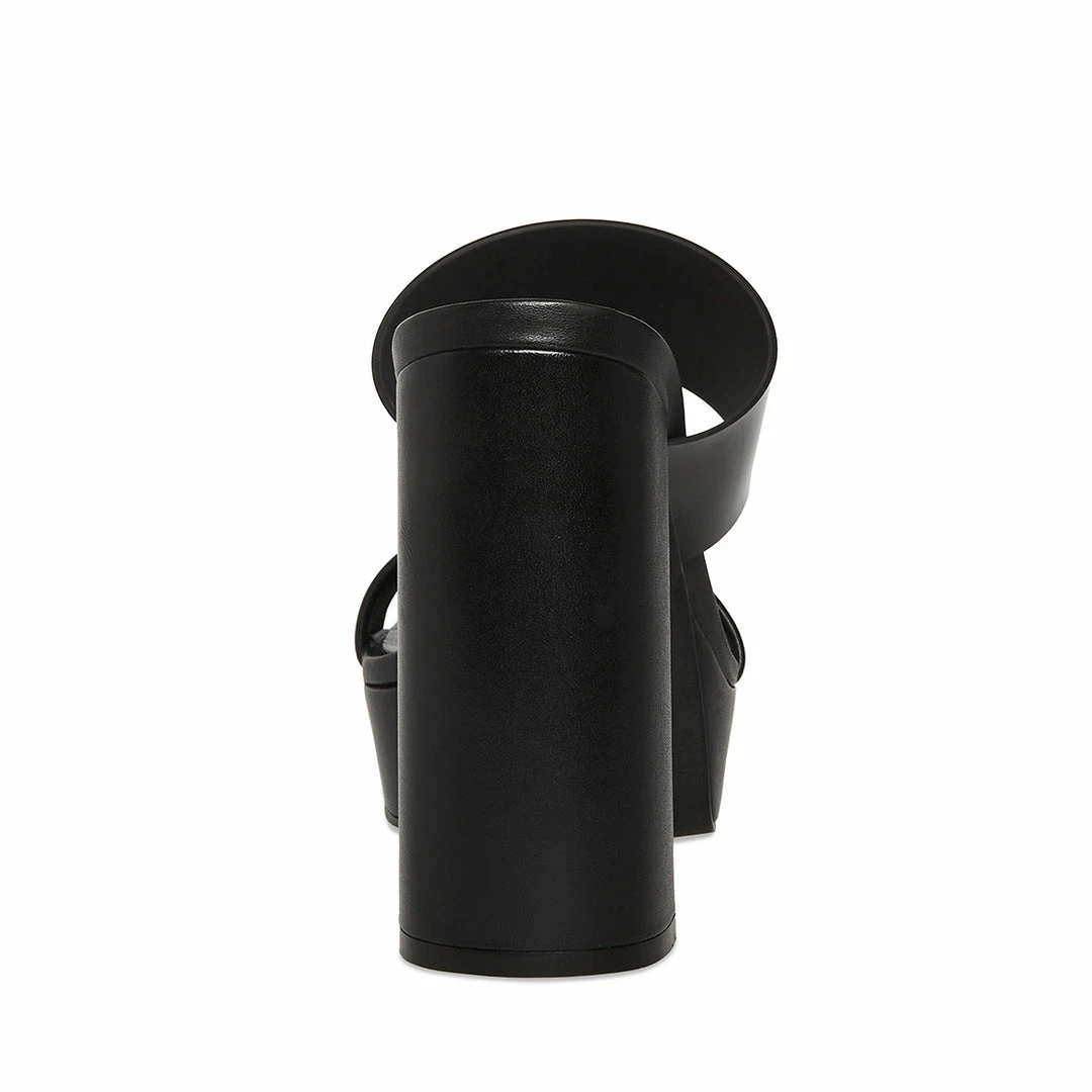 KARA is a platform heel slide sandal with the second front strap in a contrasting translucent texture.