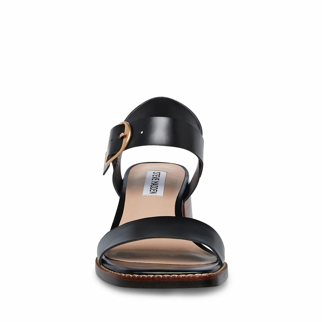 A simple strap design paired with a flared stacked heel define the look of the LORIANA square toe sandal.