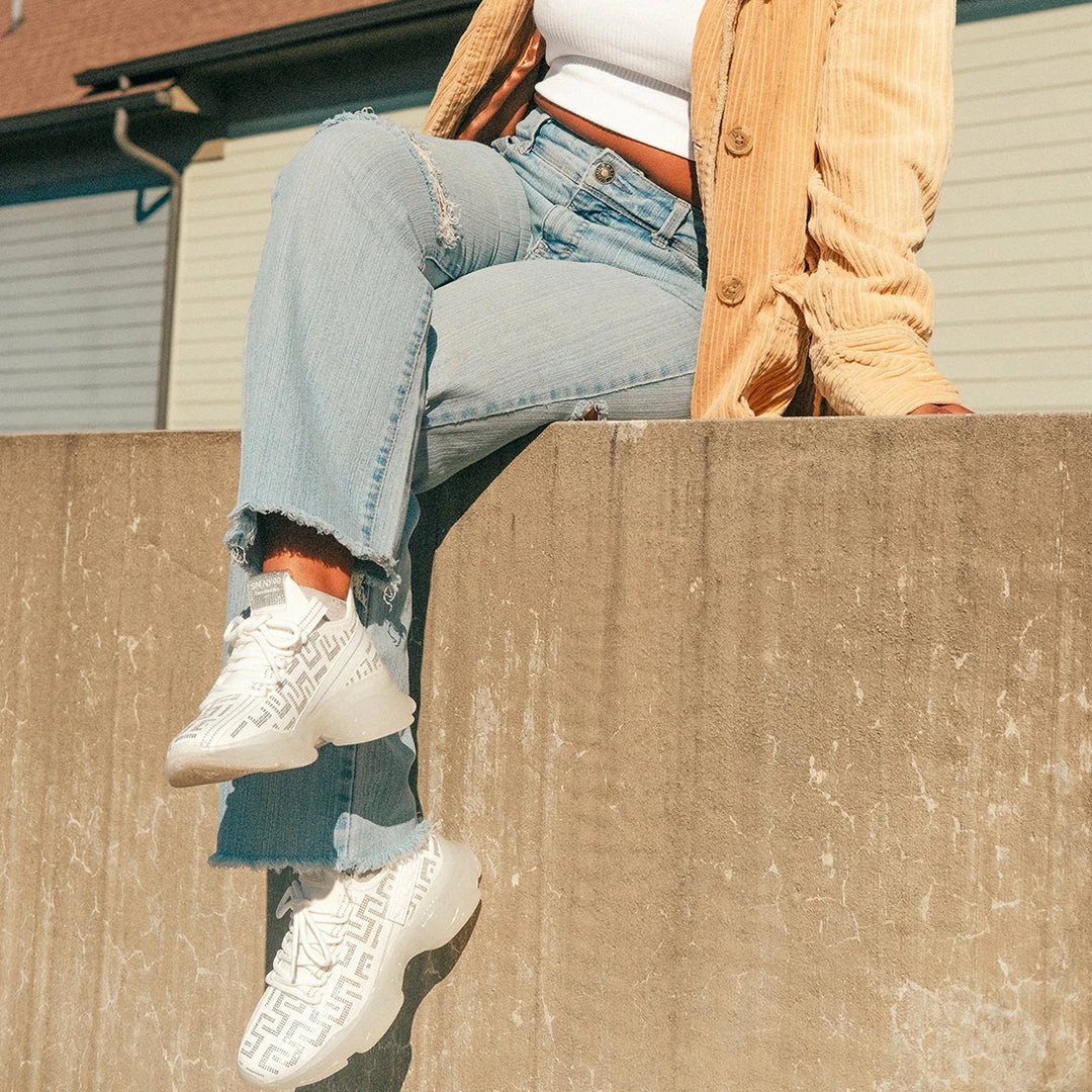 If you only rock one sneaker this season, make it MAXIMA-S. A super-sleek monochromatic color palette unites this kick’s defining features, which range from a texture-blocked knit upper to an artfully sculpted sole and glitzy rhinestone embellishment.