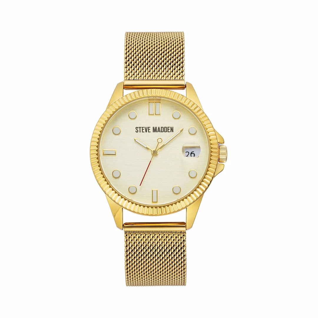 - Band: nickel free compliant goldtone Stainless Steel Mesh