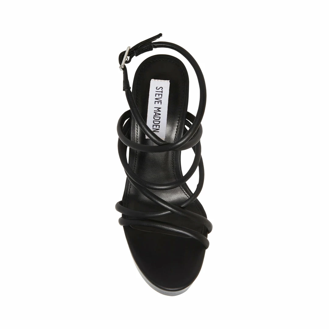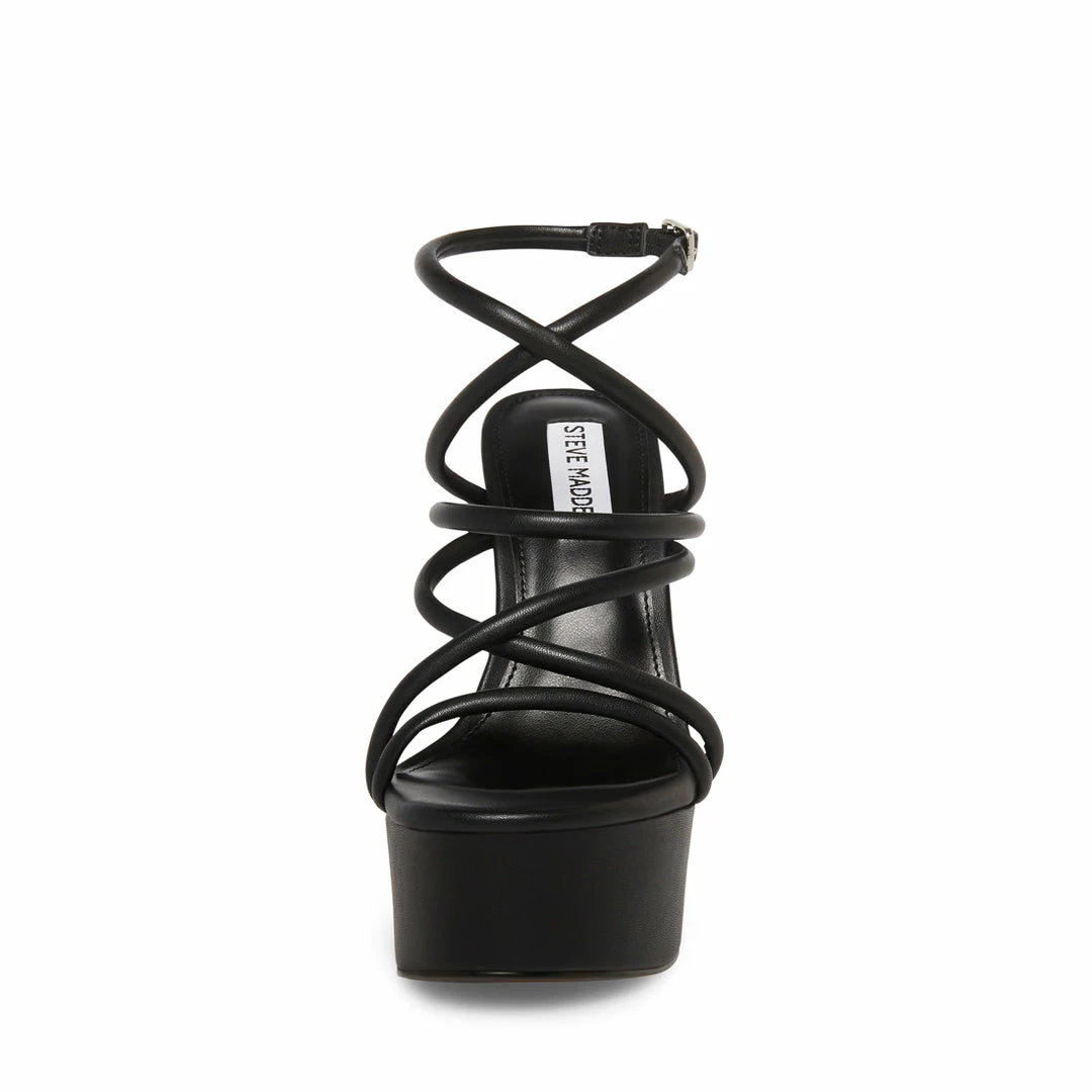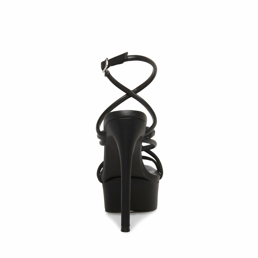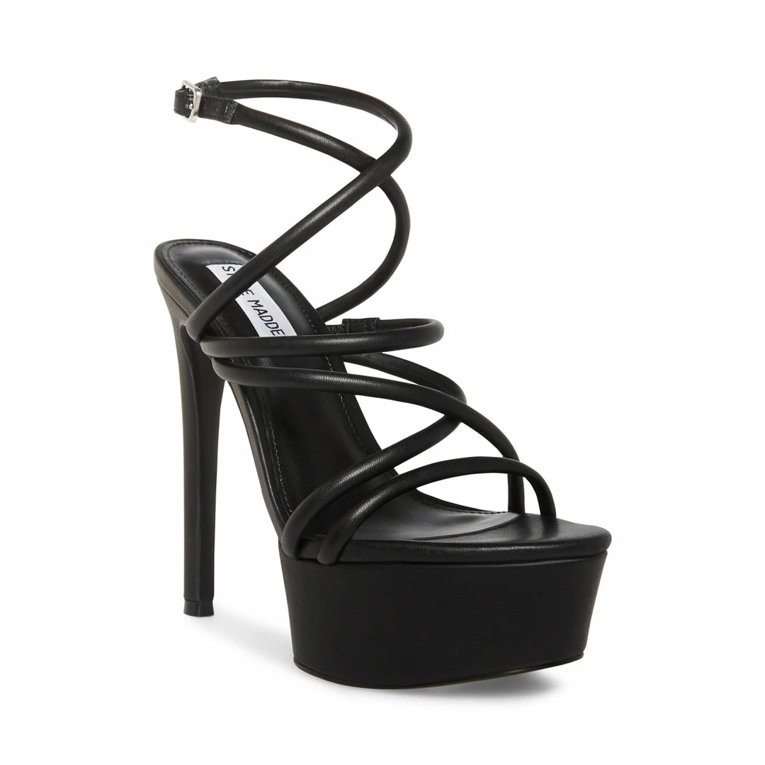 Va va voom is what comes to mind when we think of MISSY. Rows of criss cross straps, a skinny stiletto heel, and a thick platform are the recipe for a memorable night out.