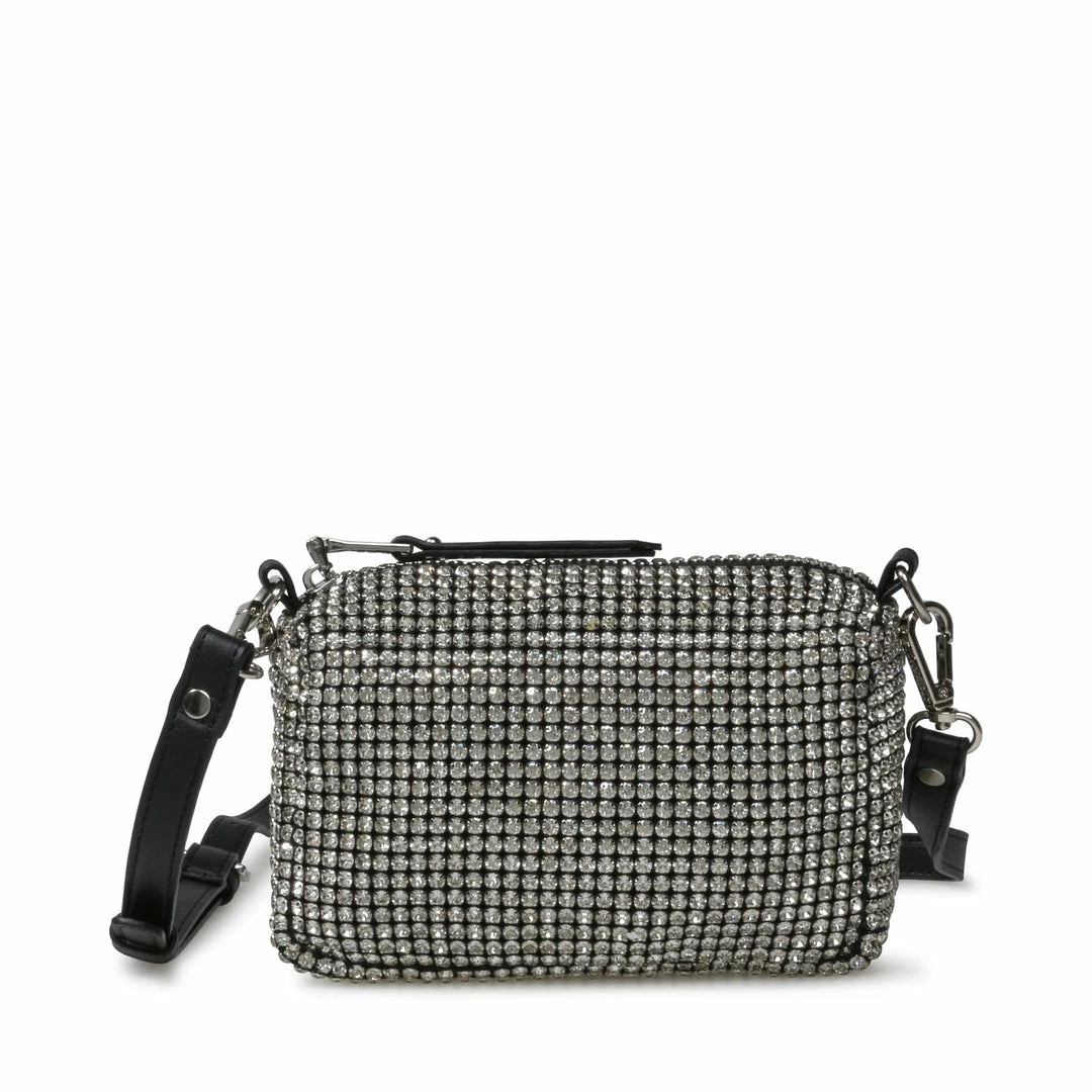 The BNOBLE-C is a surprisingly roomy pochette encased in a sparkling rhinestone exterior with interchangeable straps for versatile style.