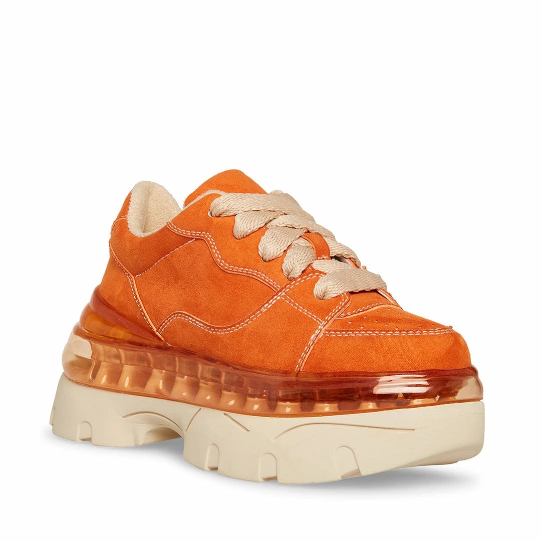 EVOLVED is an old school sneaker design that sits on top of a new school stacked platform sole with a transparent panel.