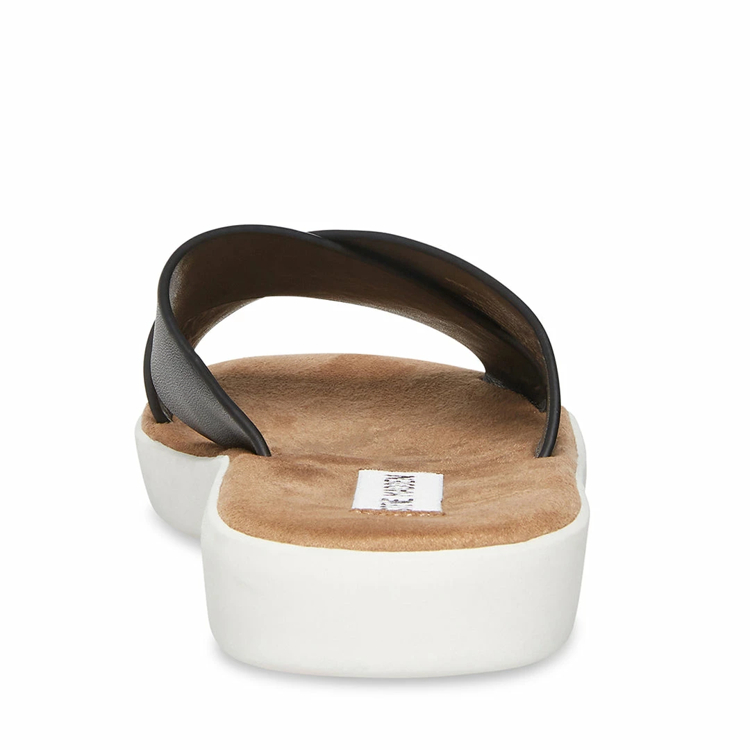 Comfortable and easy, the PERCY slide features wide crossed leather straps and a microsuede footbed.