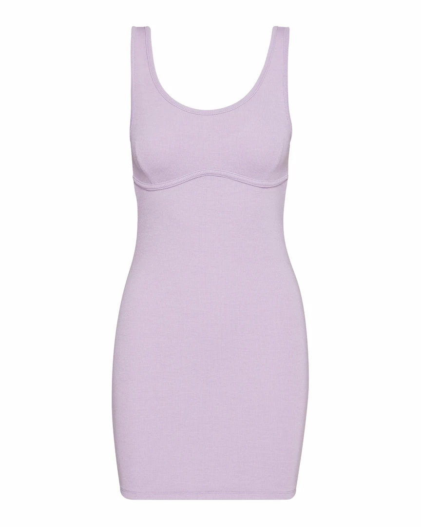 The Ribbed Dress is all about the subtle details. This simple bodycon mini lets the curved fabric under the bust be the star detail.
