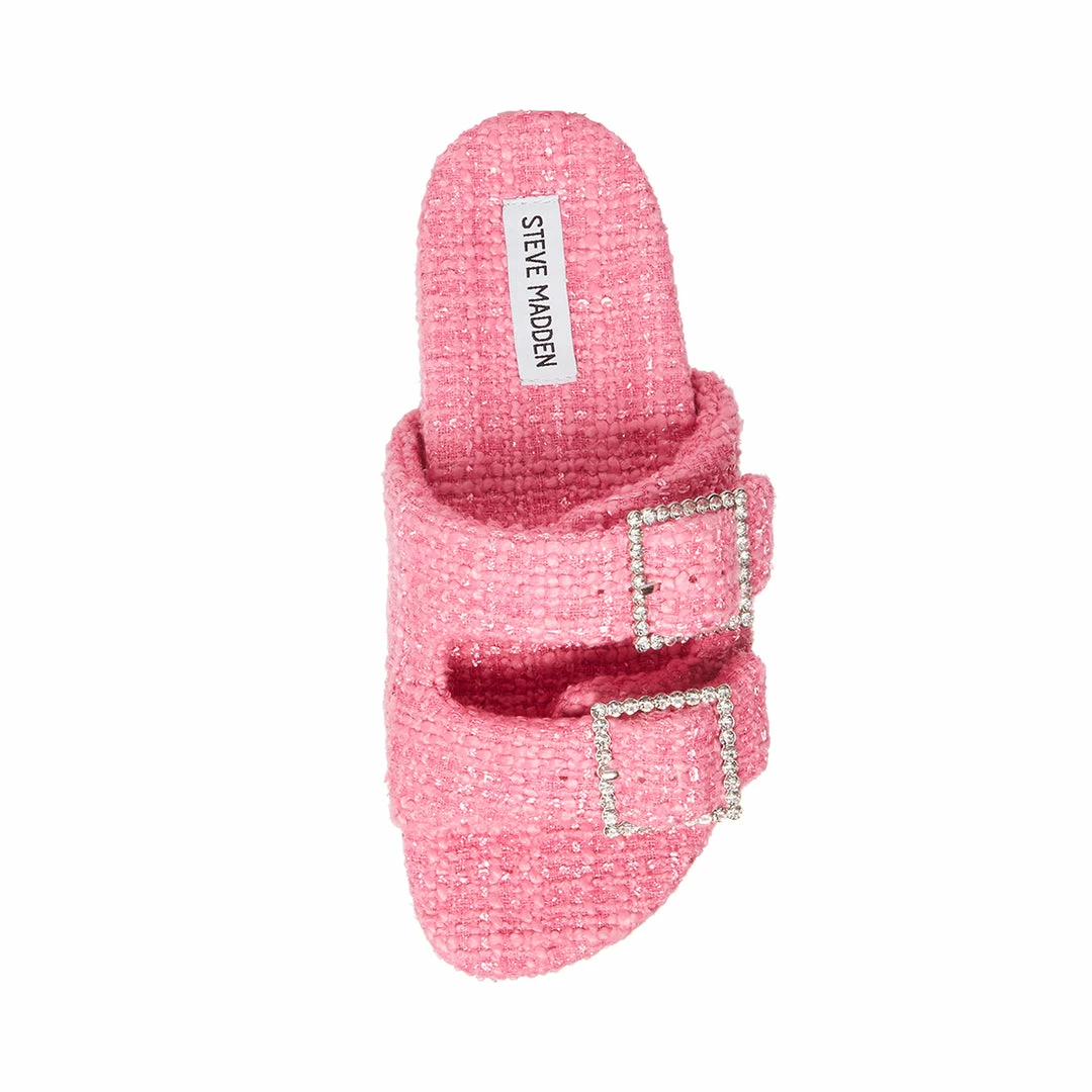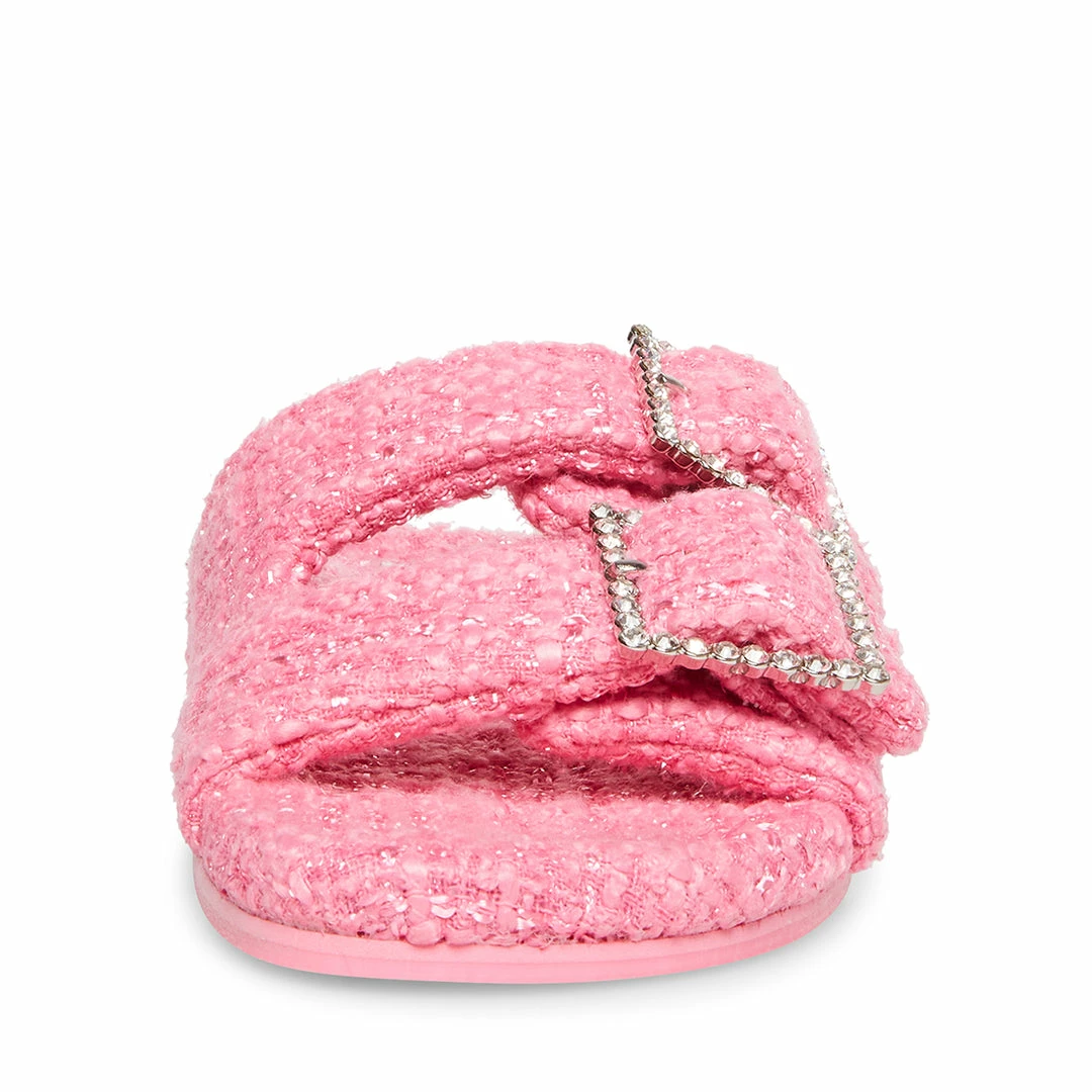 All things comfy and chic is what SANDSTORM is about! Make every day a little fancier with this slide, featuring a classy tweed design and rhinestone buckle embellishments.