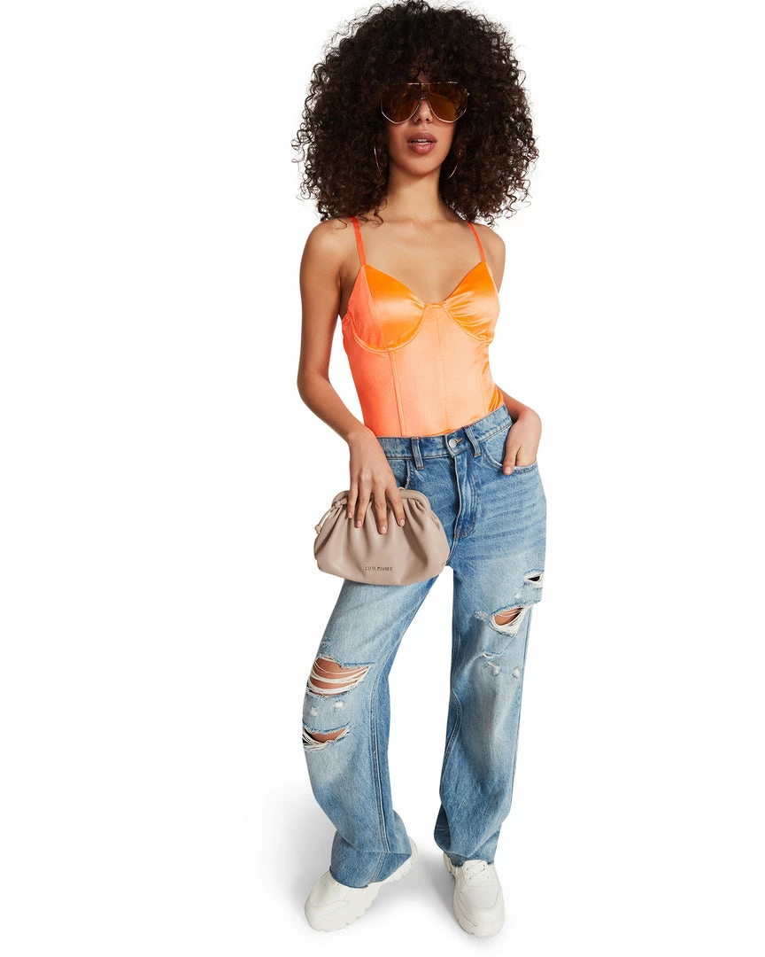 The Satin Bodysuit was plucked from our dreams. Serve angelic realness in this lingerie-inspired piece that features adjustable straps, padding, and boning in the bodice.