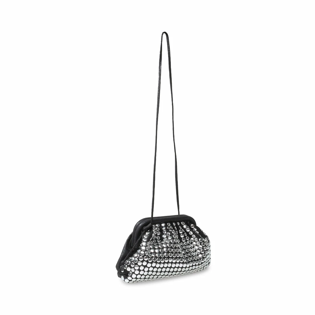 BNIKKI-M is a pouch shaped crossbody bag with stud embellishments that gathers into a frame closure at the top.