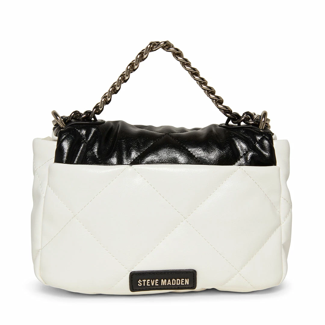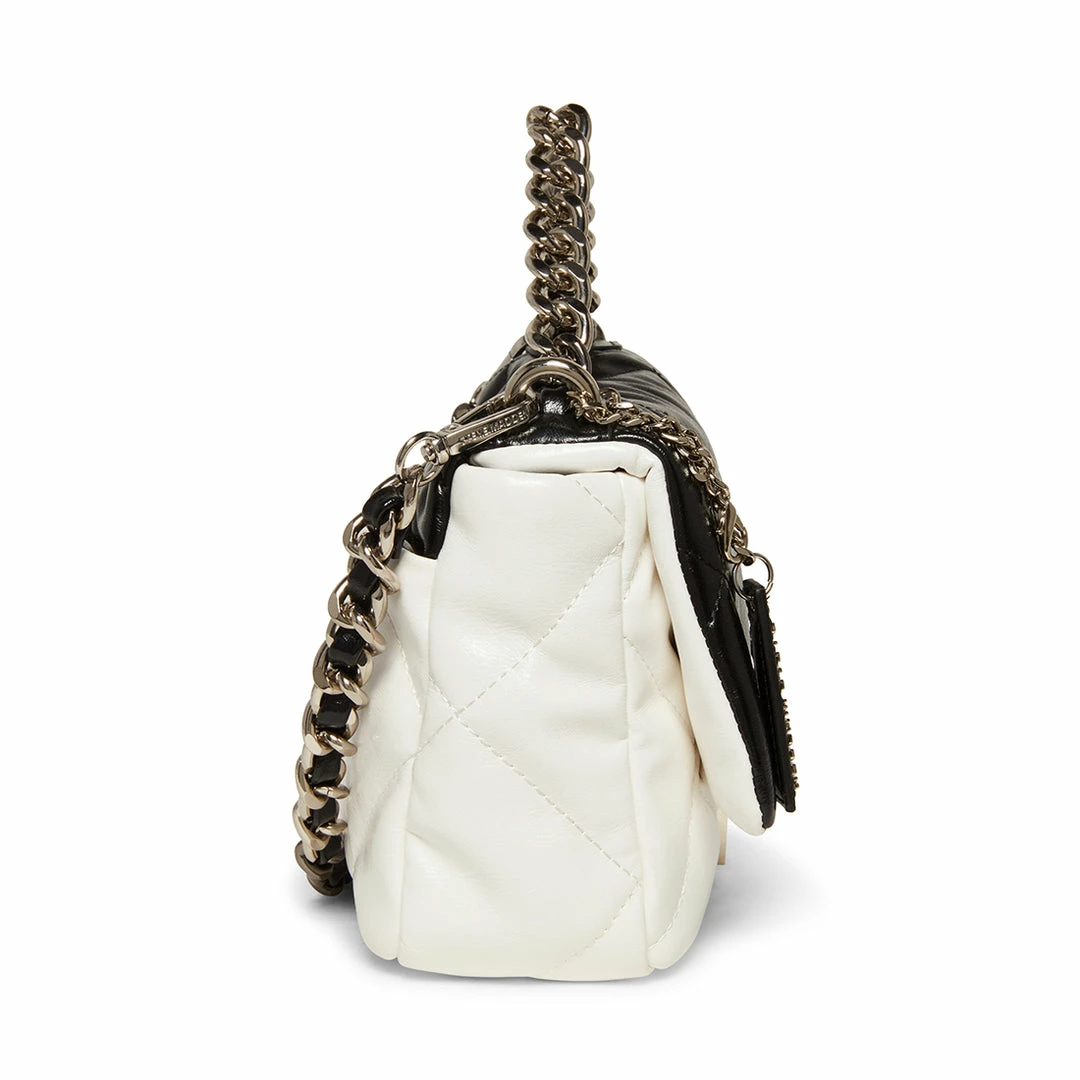 Designed with a color-blocked quilted pattern, this chic and bag features detachable straps and can be worn crossbody or over the shoulder.