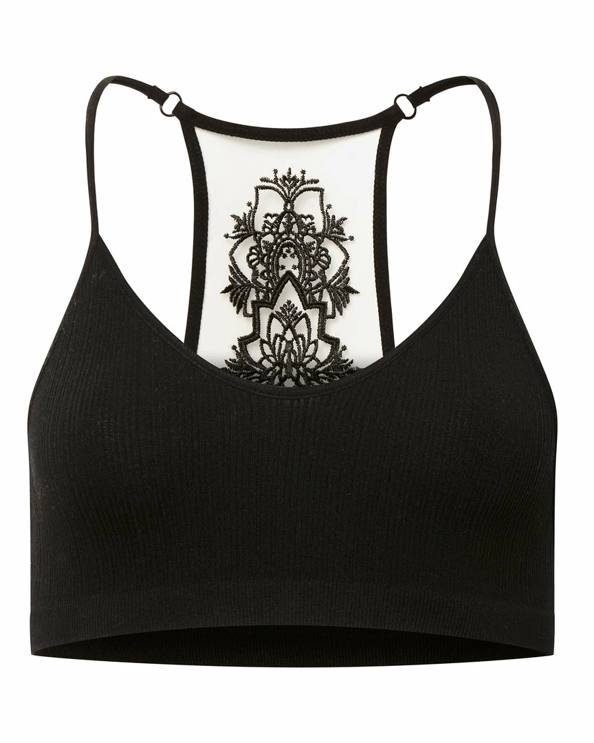 Align your chakras in this soft racerback bralette featuring intricate lace detailing.
