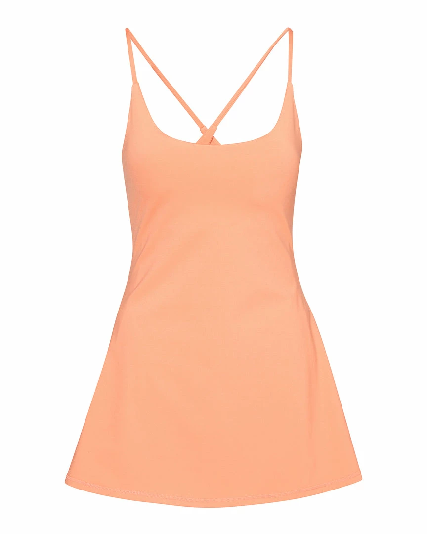 Your active lifestyle deserves this dress. Crafted from stretch jersey material, this style features built-in bike shorts and pockets.