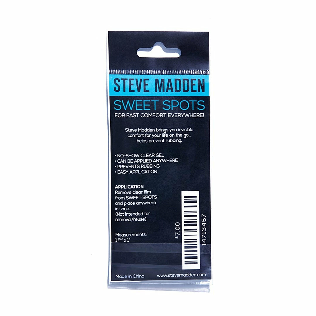 Steve Madden brings you invisible comfort for your life on the go….helps prevent against rubbing. SWEETSPOTS will help prevent painful blisters on your heels, and can be applied anywhere on your shoes to ease friction. Madden’s gel pads cushion your foot so you can walk all day (or night!) in comfort. They stay in place and keep your feet cool, dry and fresh.