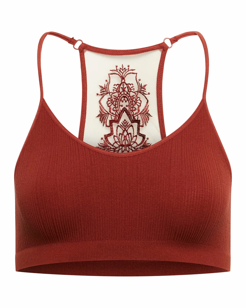 Align your chakras in this soft racerback bralette featuring intricate lace detailing.